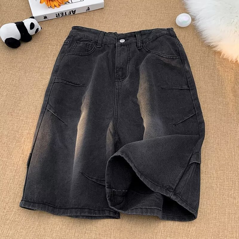 设计感小众复古做旧牛仔短裤男夏季美式ins潮牌宽松直筒五分裤子