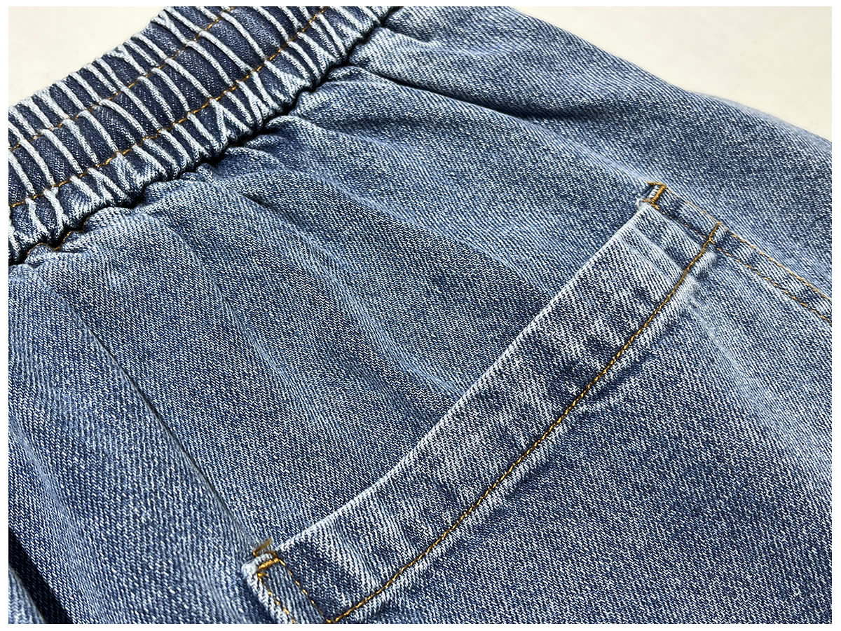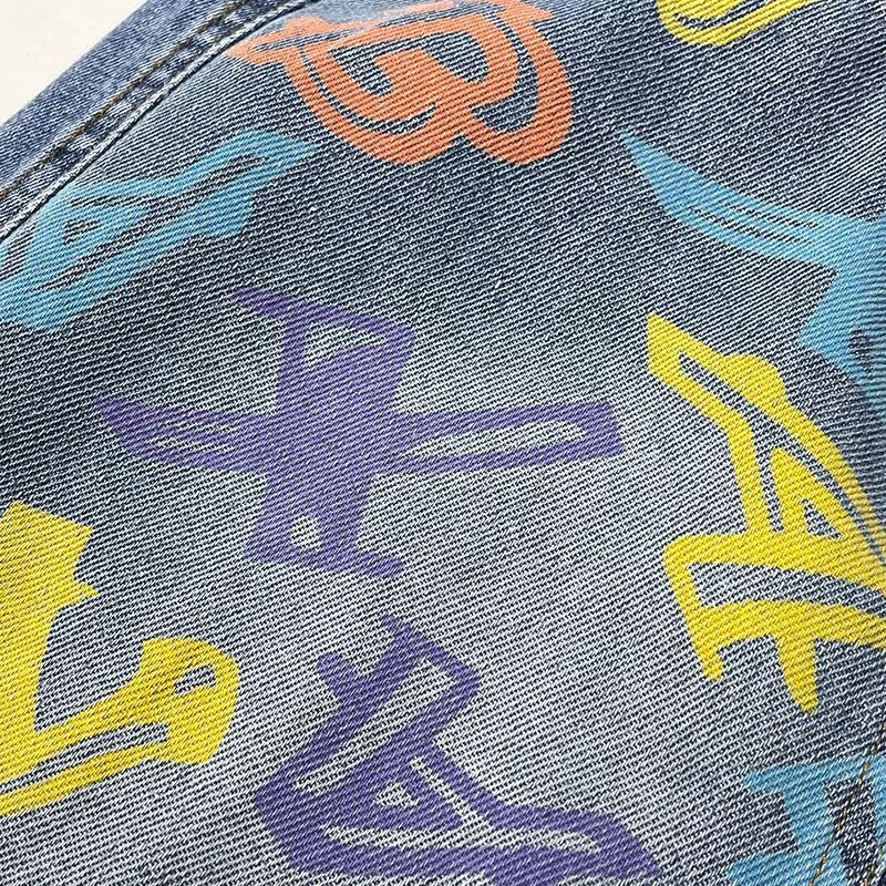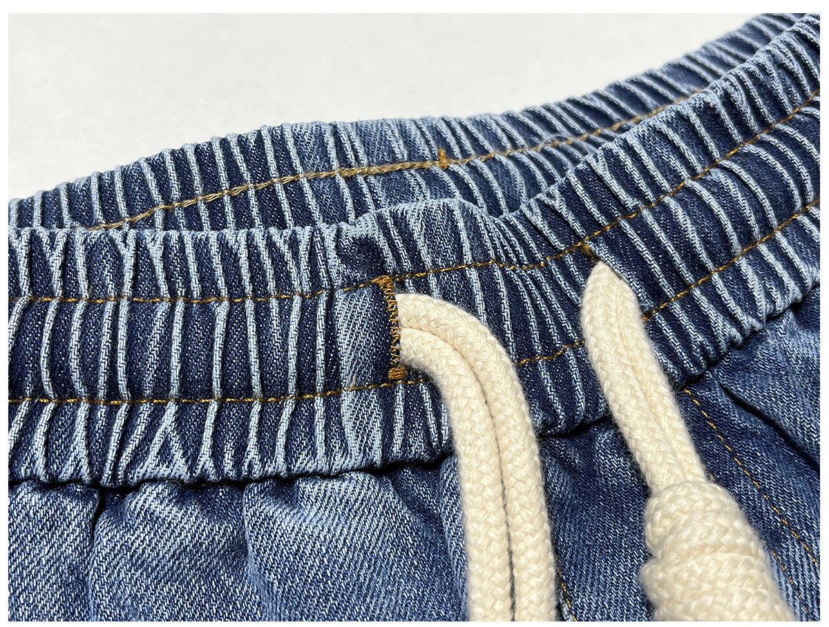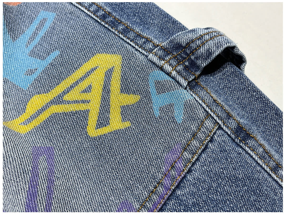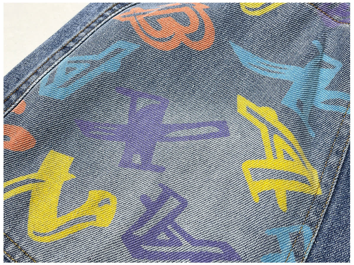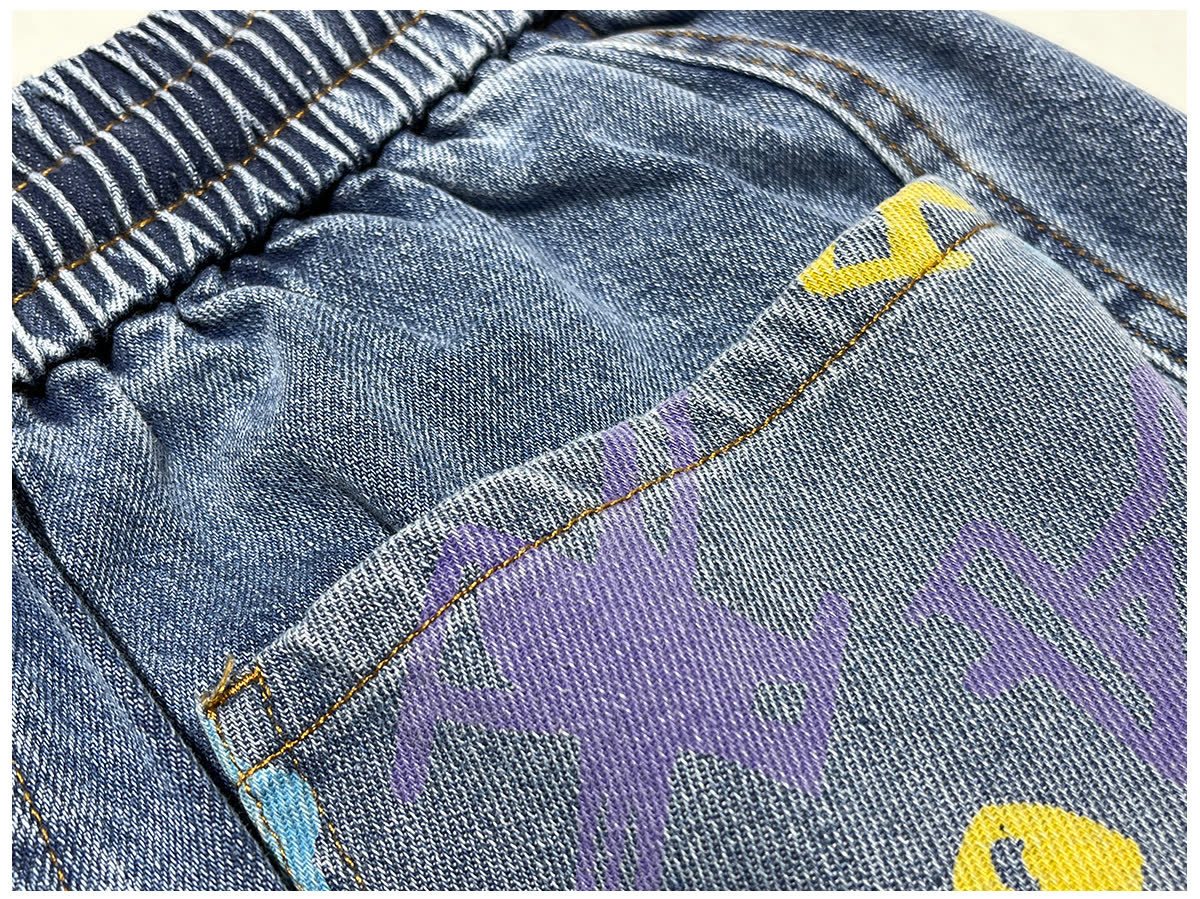 涂鸦牛仔短裤男夏季新款宽松潮牌马裤松紧腰美式高街五分裤