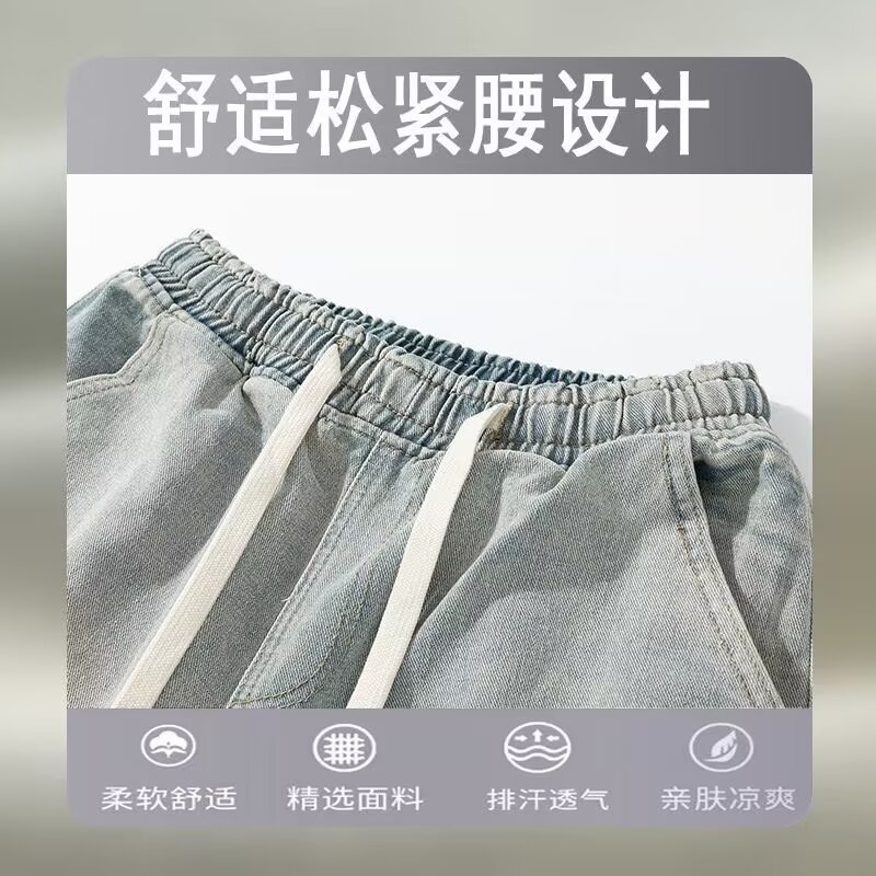 日系纯色宽松牛仔短裤男款夏天夏季新款潮流vibe休闲五分中裤