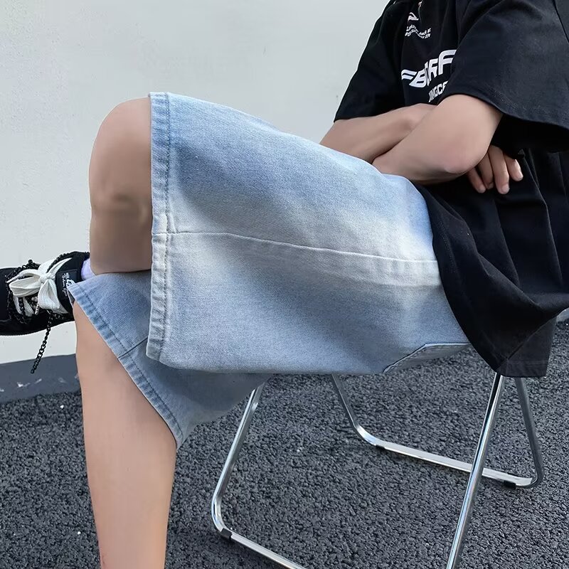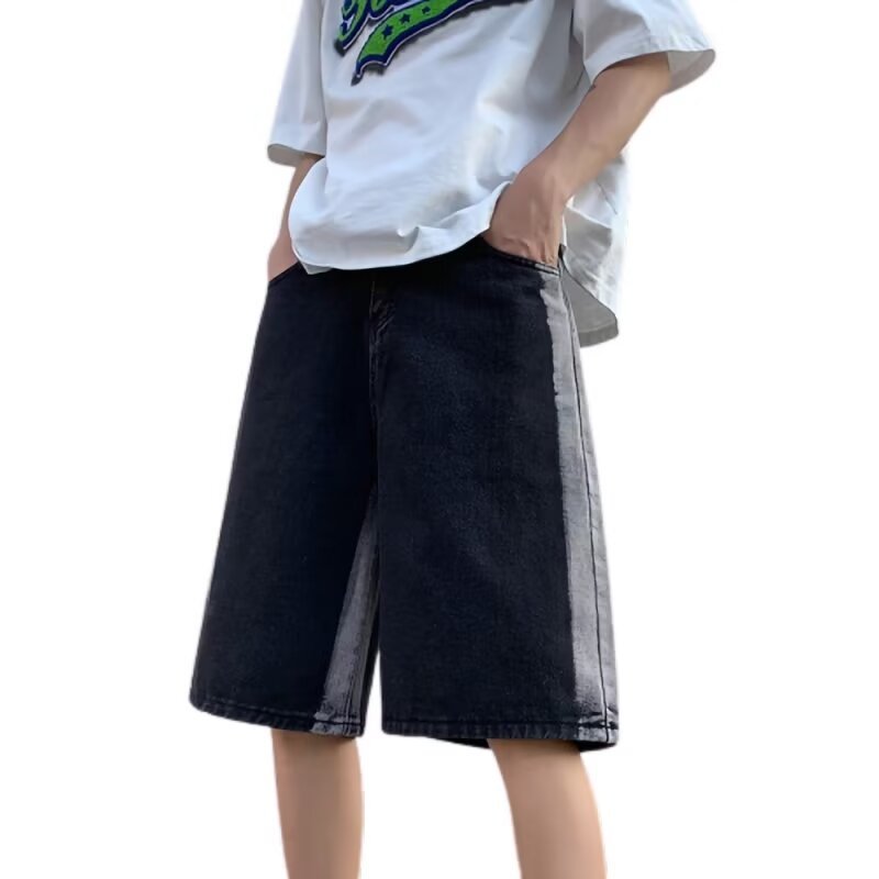 扎染渐变牛仔短裤男夏季潮牌美式复古vibe高街痞帅宽松直筒五分裤