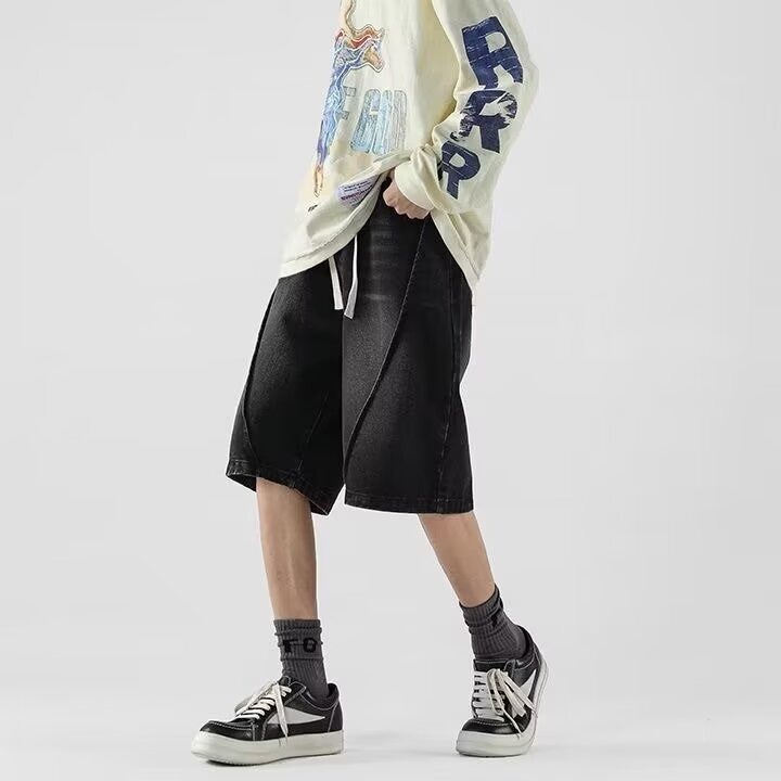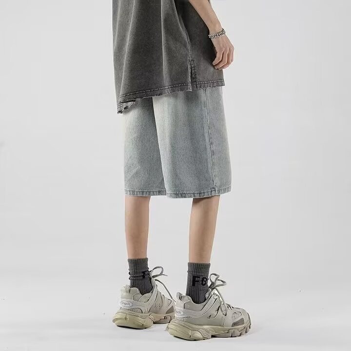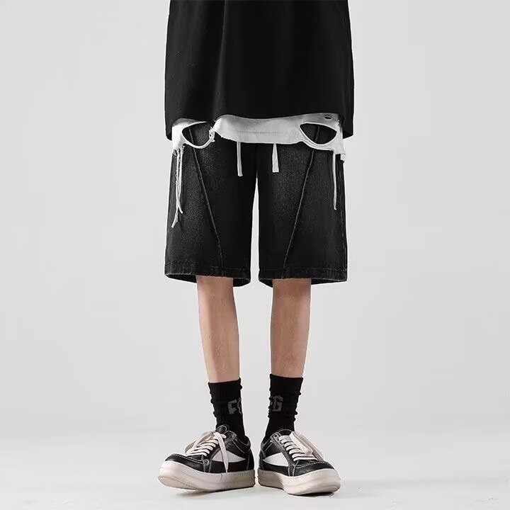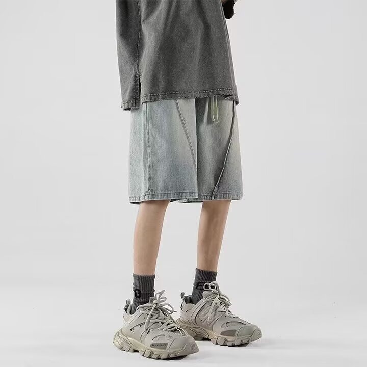 潮流美式复古牛仔短裤男夏季设计感高街ins宽松直筒休闲五分裤