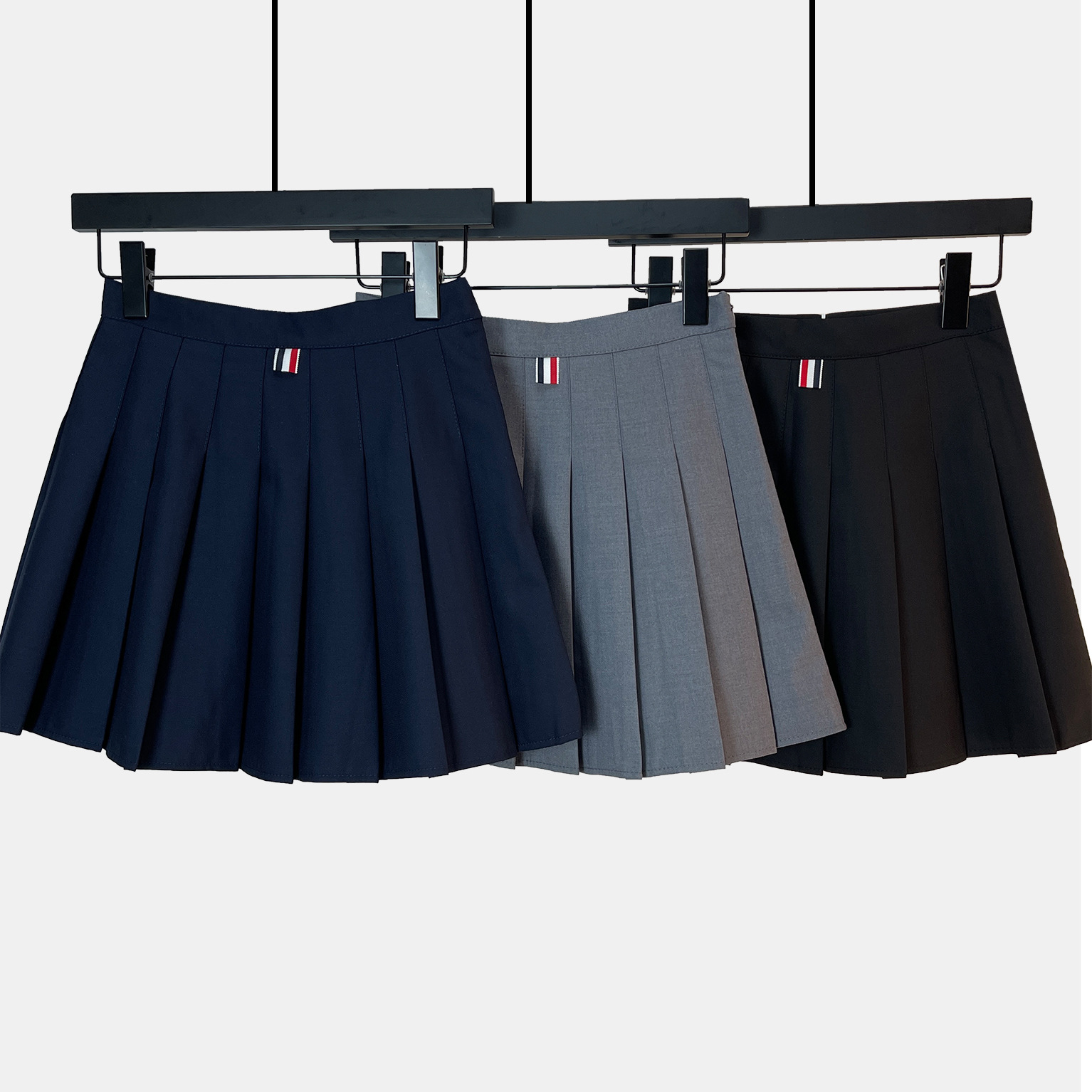 西装料TB灰色百褶裙A字高腰显瘦百搭短裙藏青色半身裙裤裙女春夏