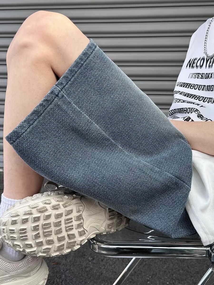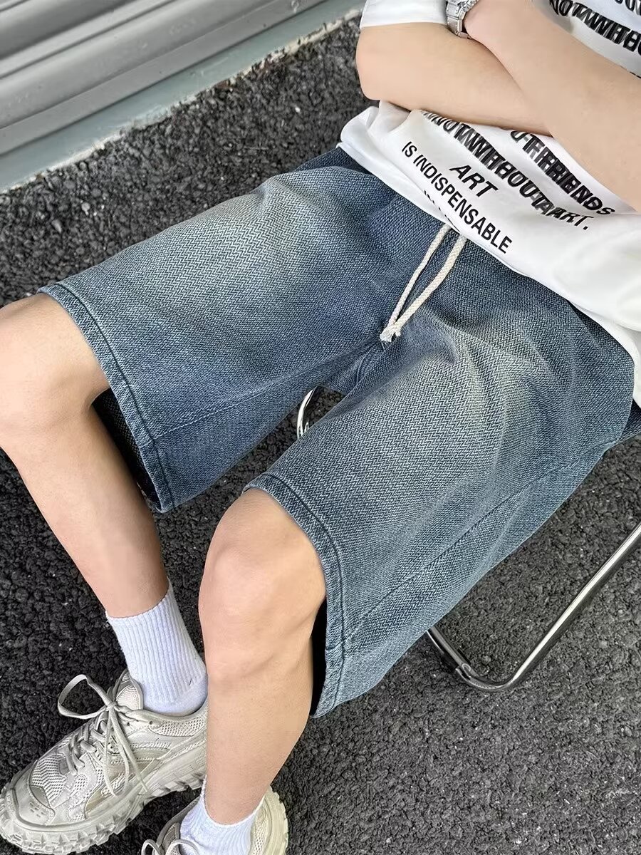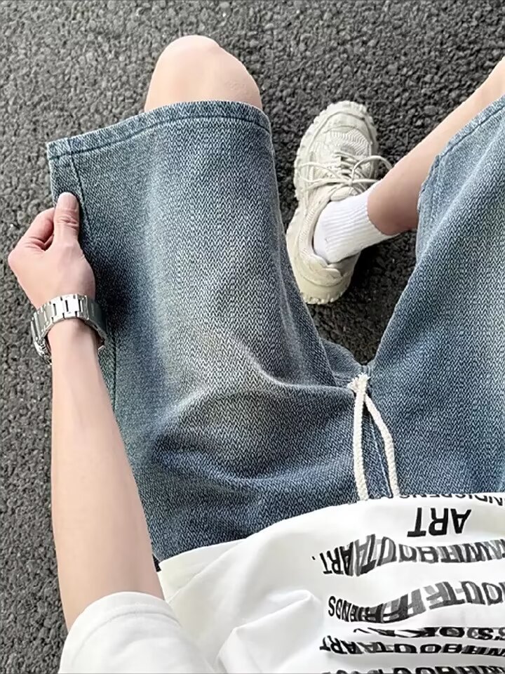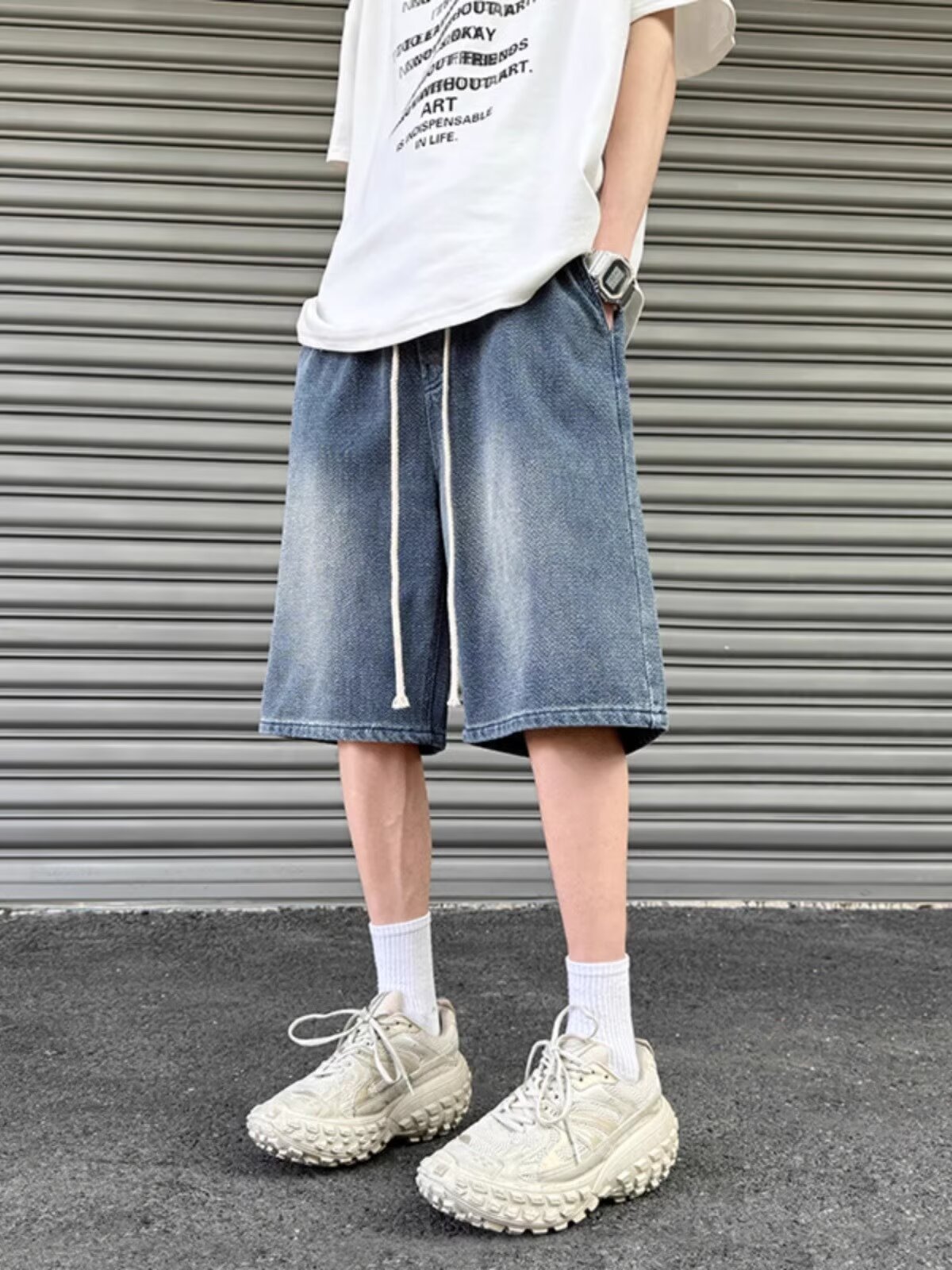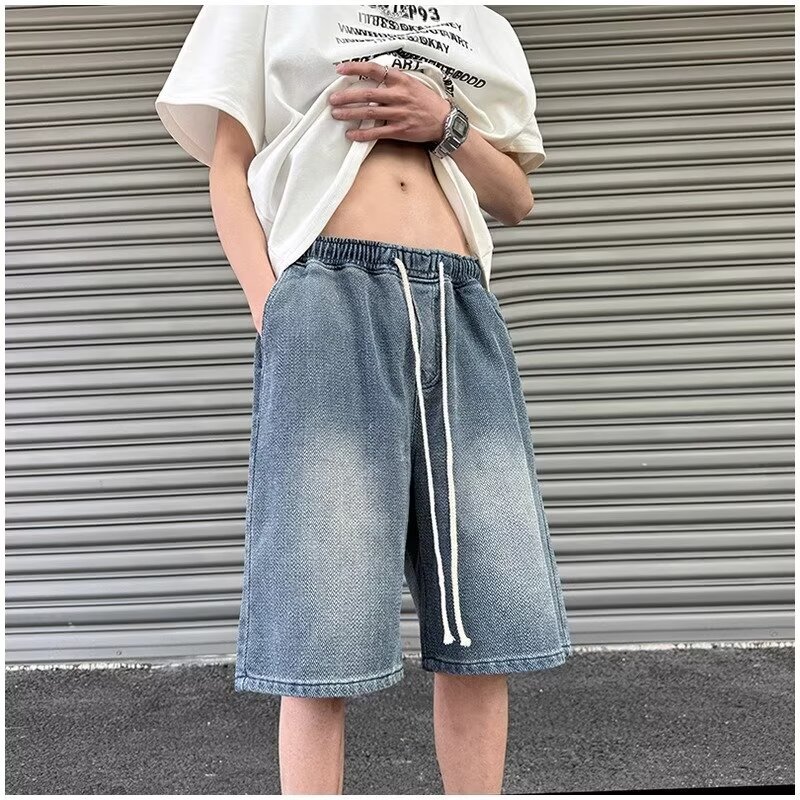 美式复古星空纹抽绳牛仔短裤男潮牌高街vibe松紧腰五分裤子夏薄款
