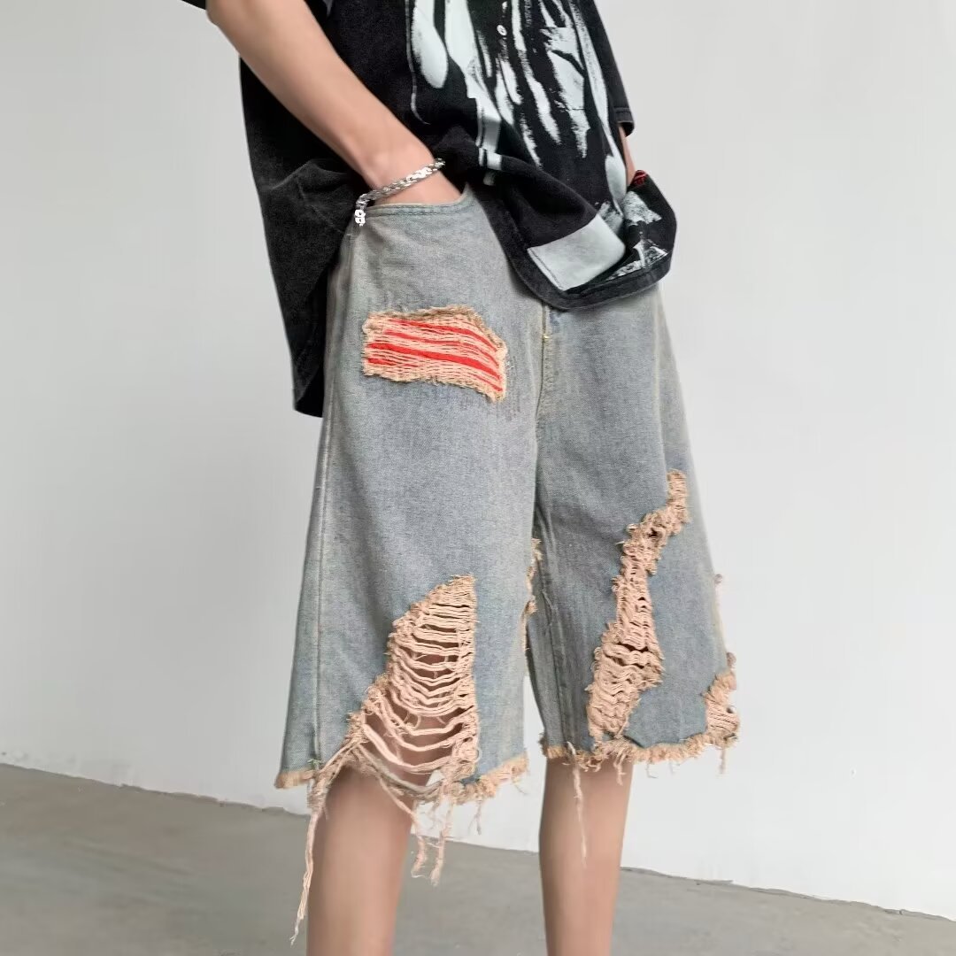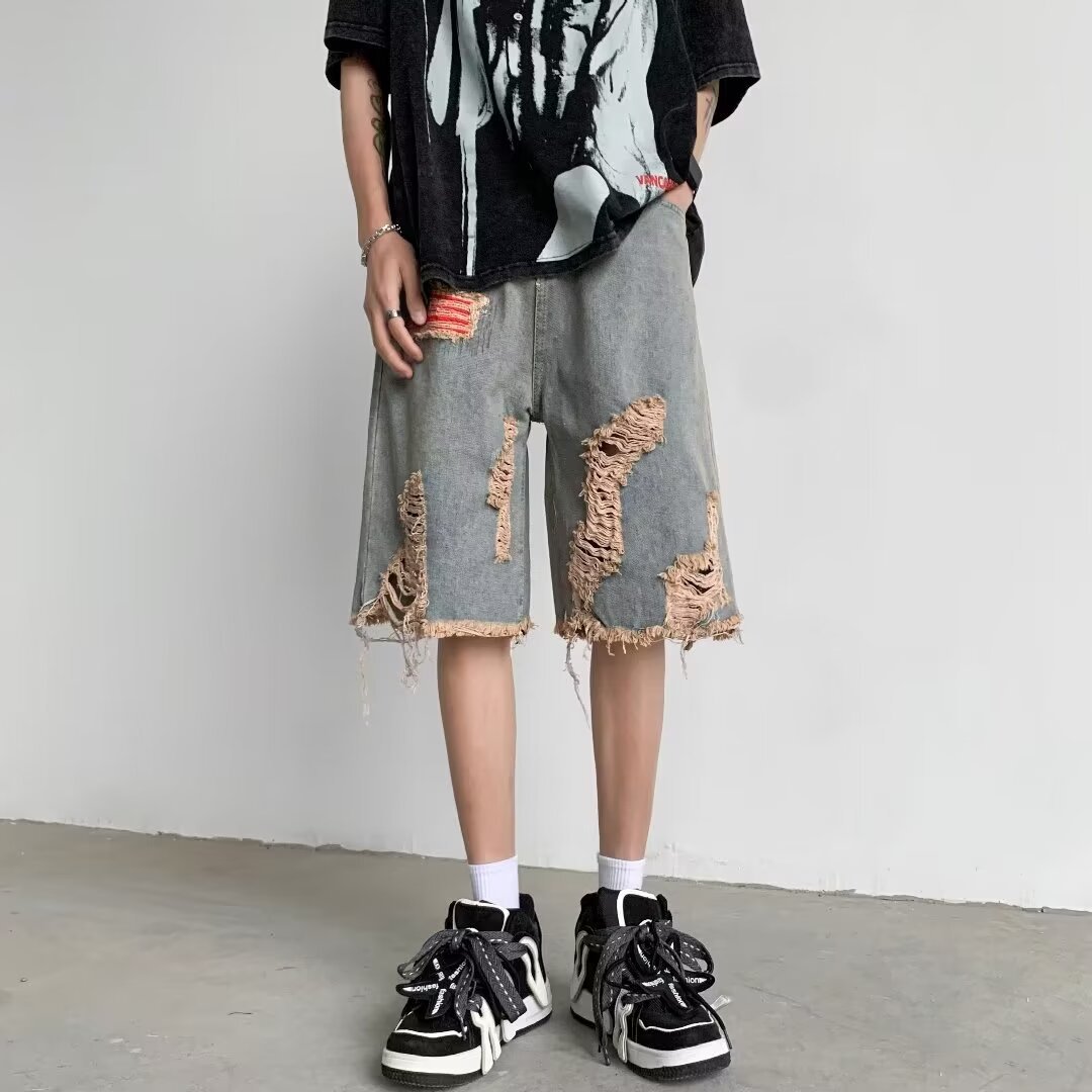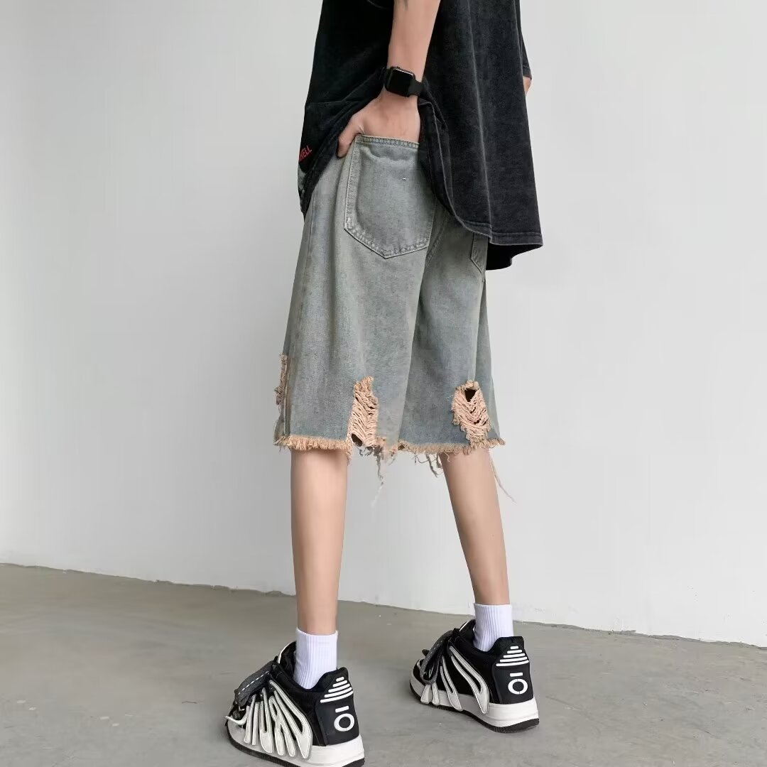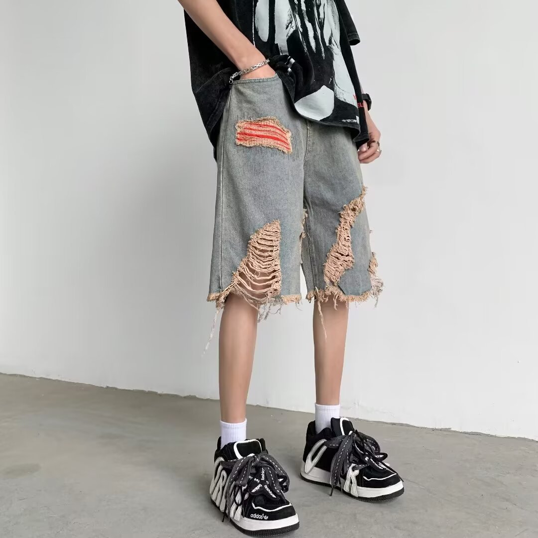 破洞牛仔短裤男款夏季设计感小众乞丐马裤潮美式高街水洗五分中裤