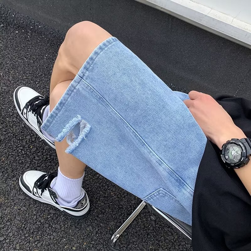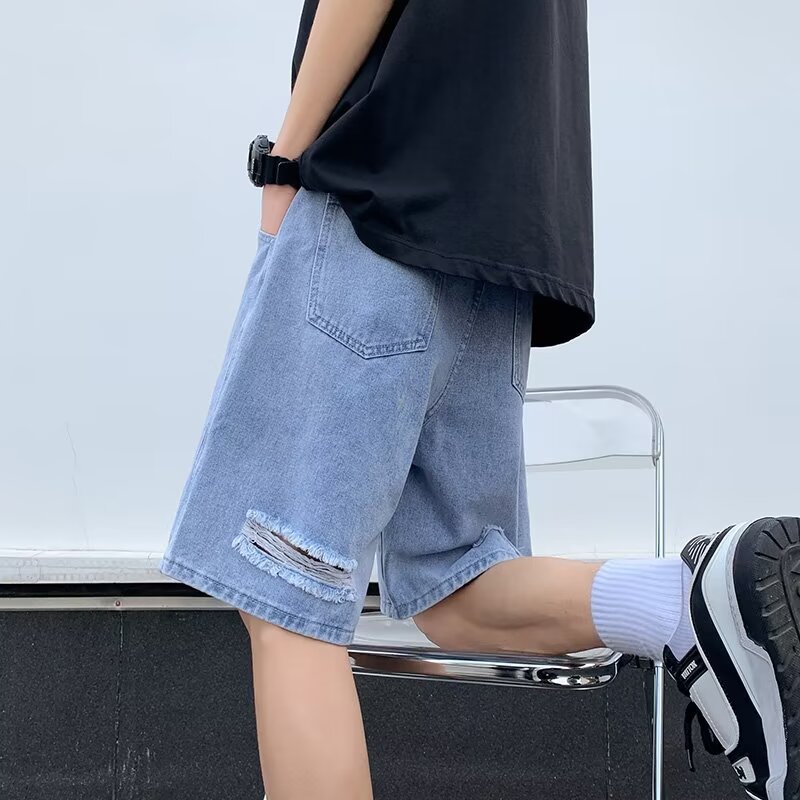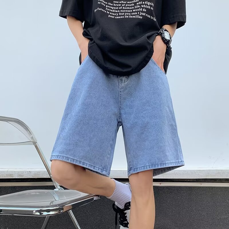 牛仔短裤男士五分中裤宽松直筒夏季薄款新款潮牌ins休闲裤子