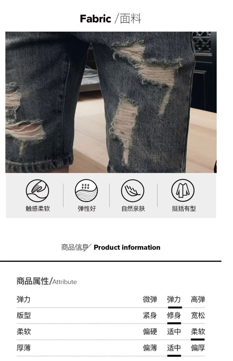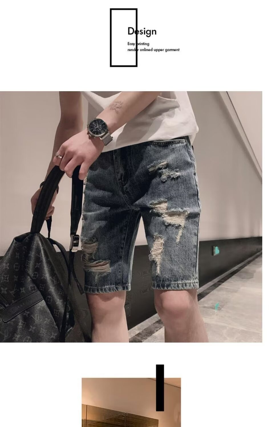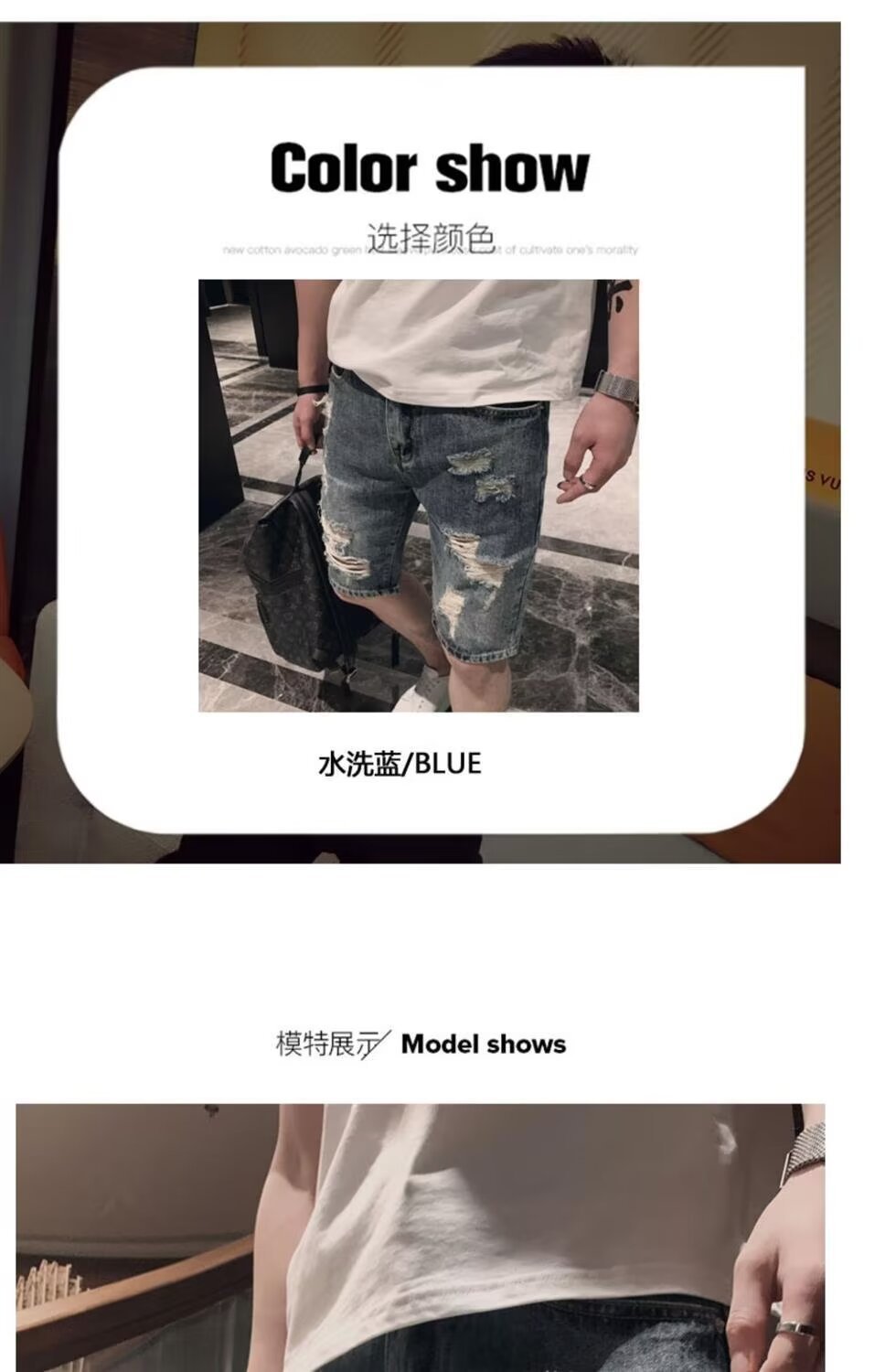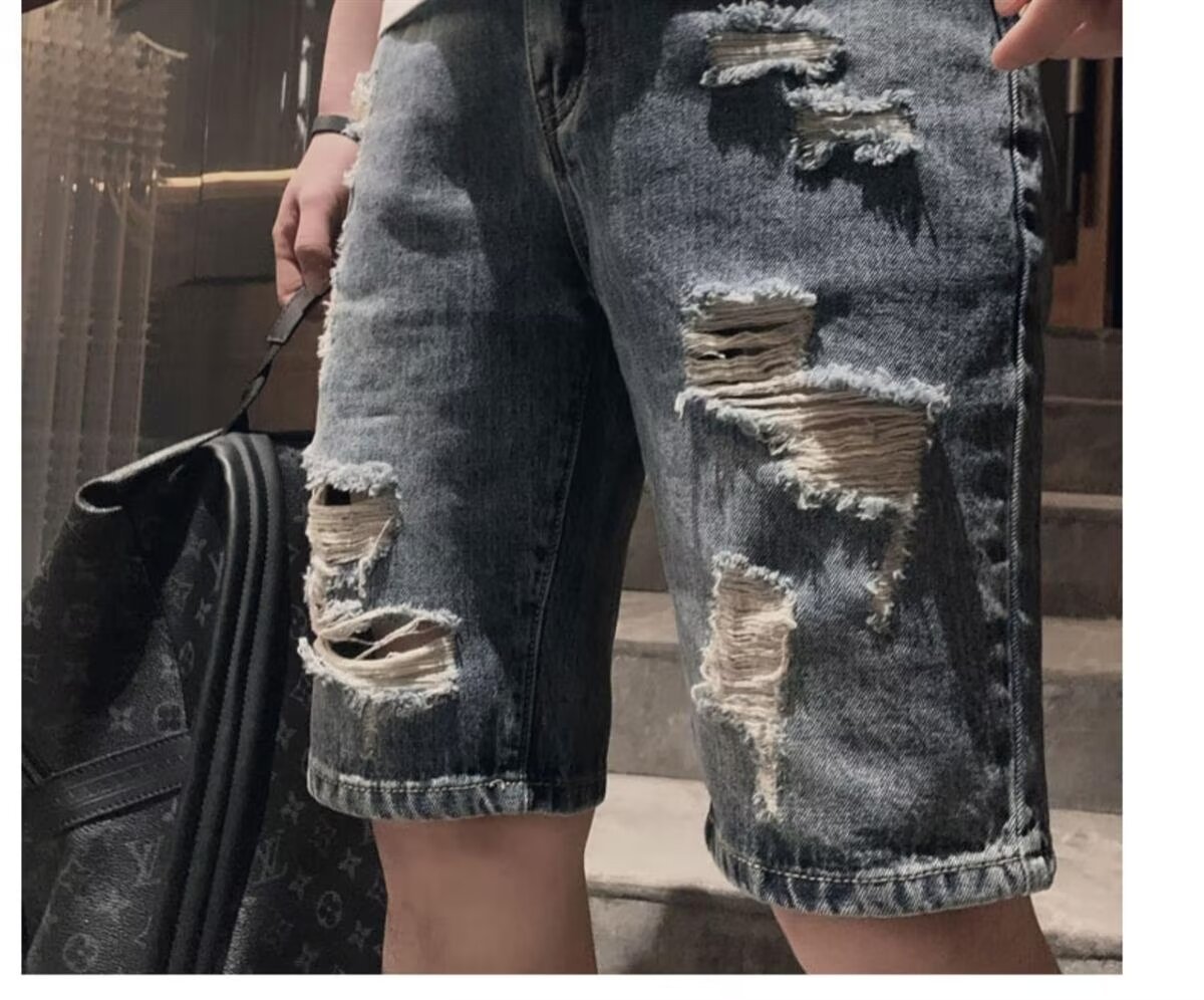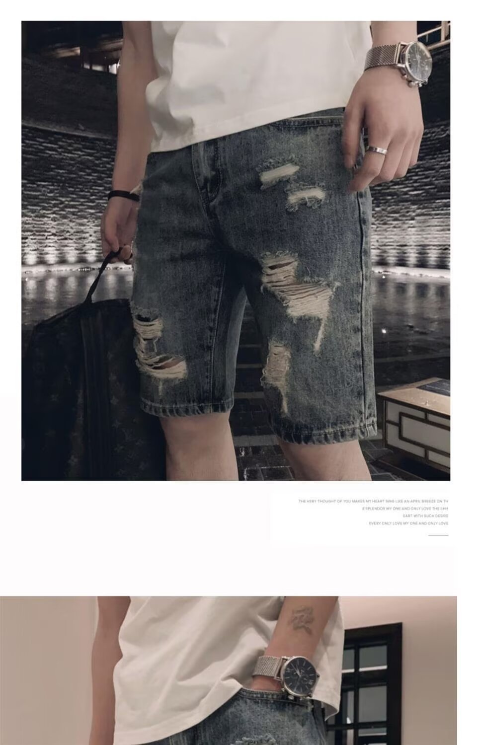 夏天破洞薄款中裤潮牌五分裤男士牛仔短裤直筒宽松韩版潮流