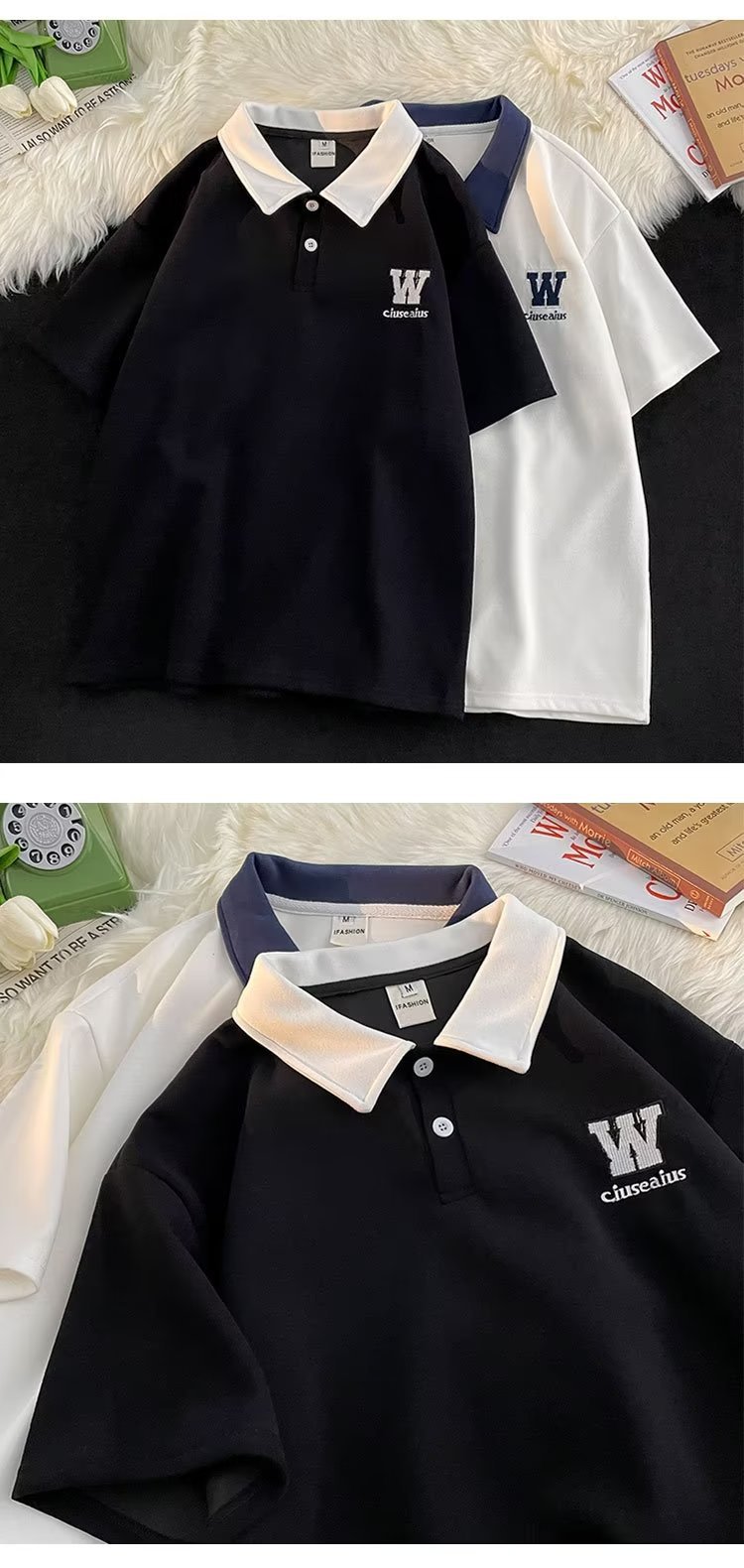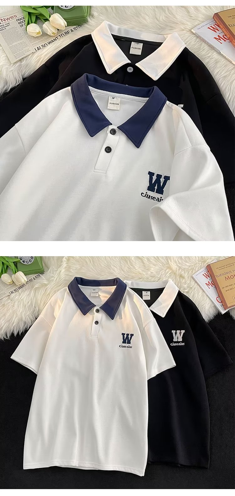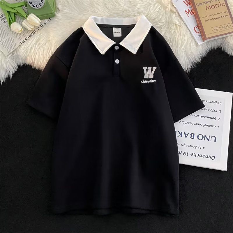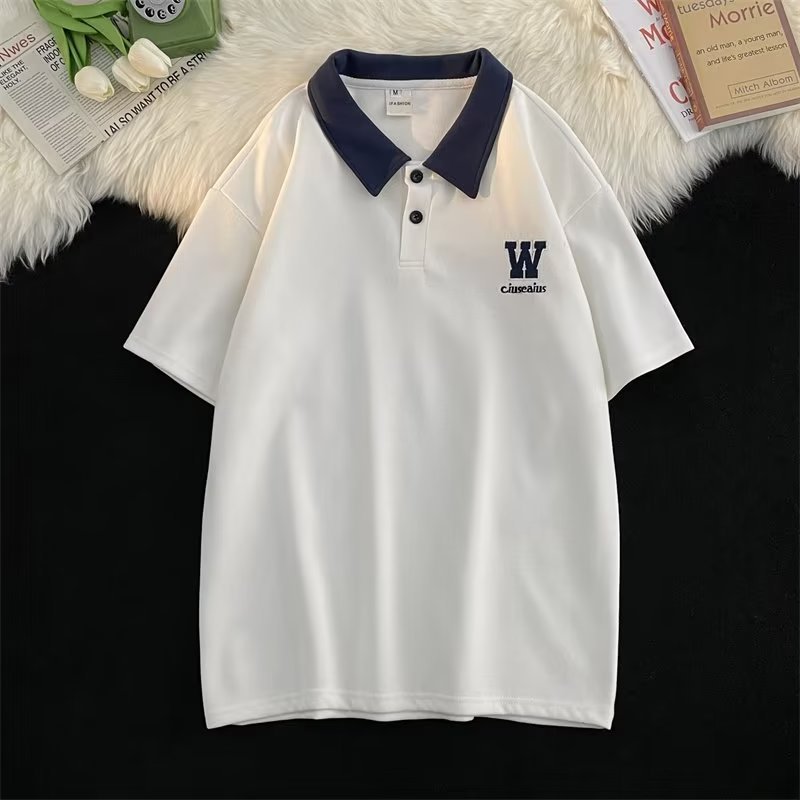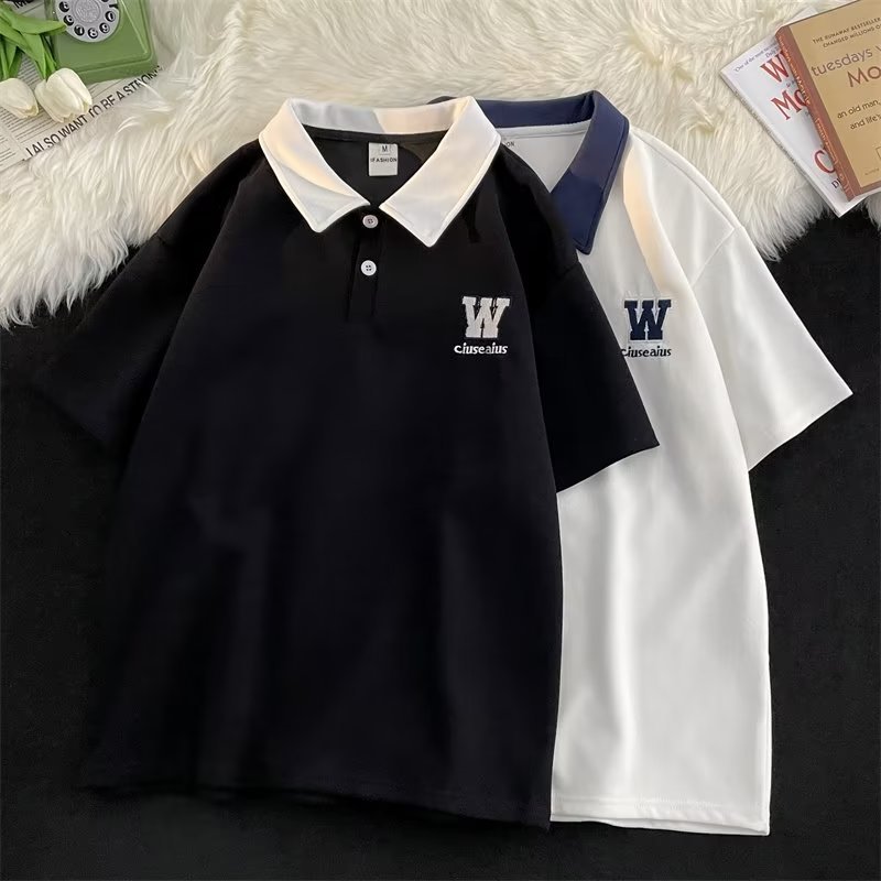 polo衫短袖男夏季宽松潮牌潮流青少年翻领t恤学院风撞色半袖体恤