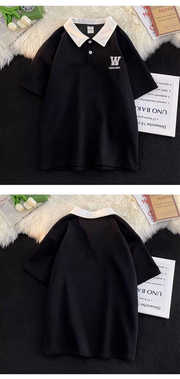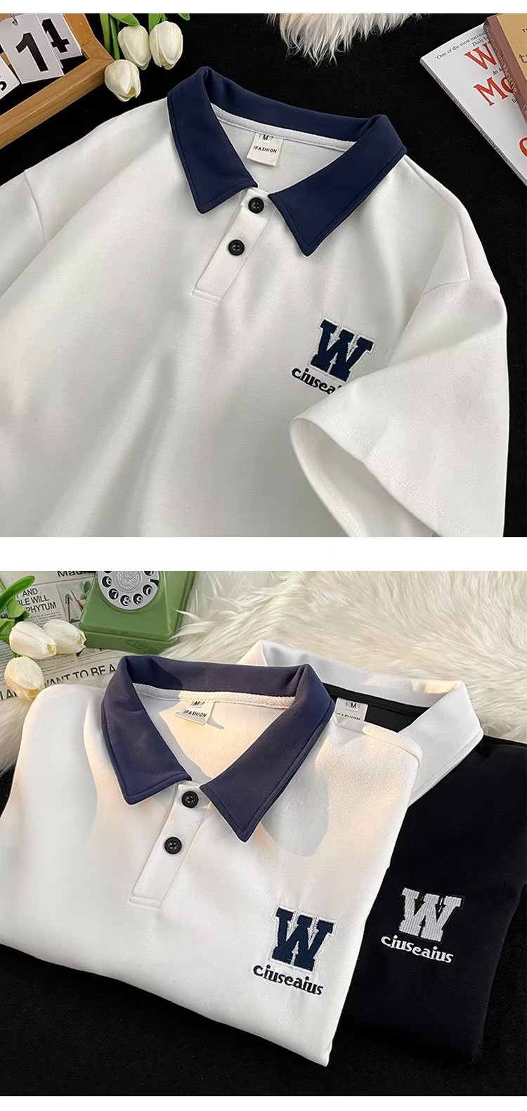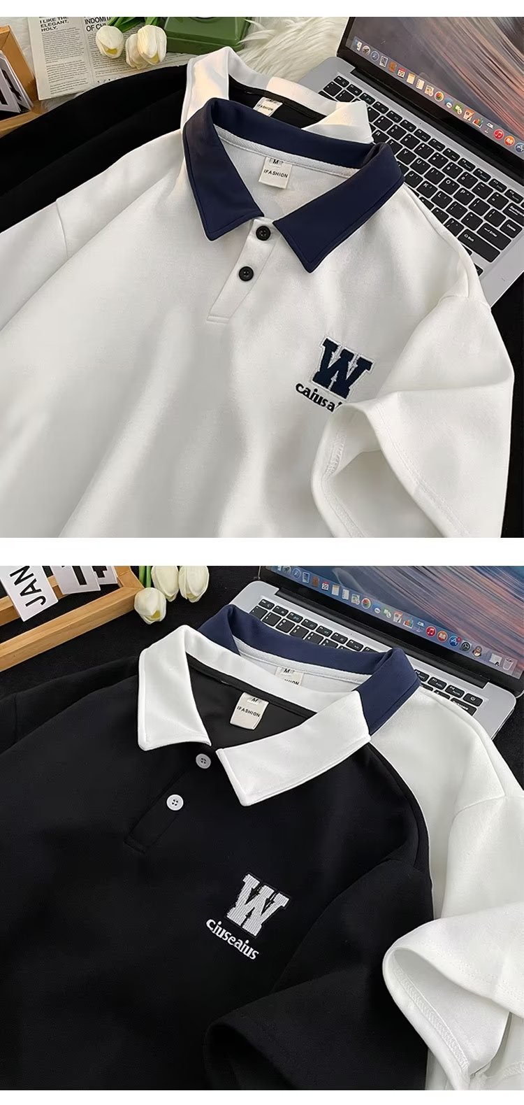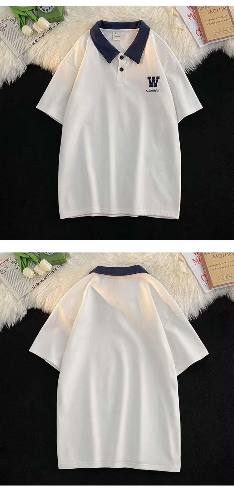 polo衫短袖男夏季宽松潮牌潮流青少年翻领t恤学院风撞色半袖体恤