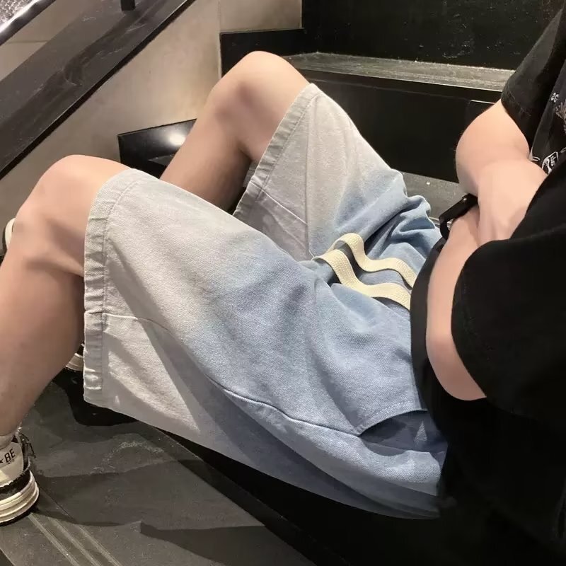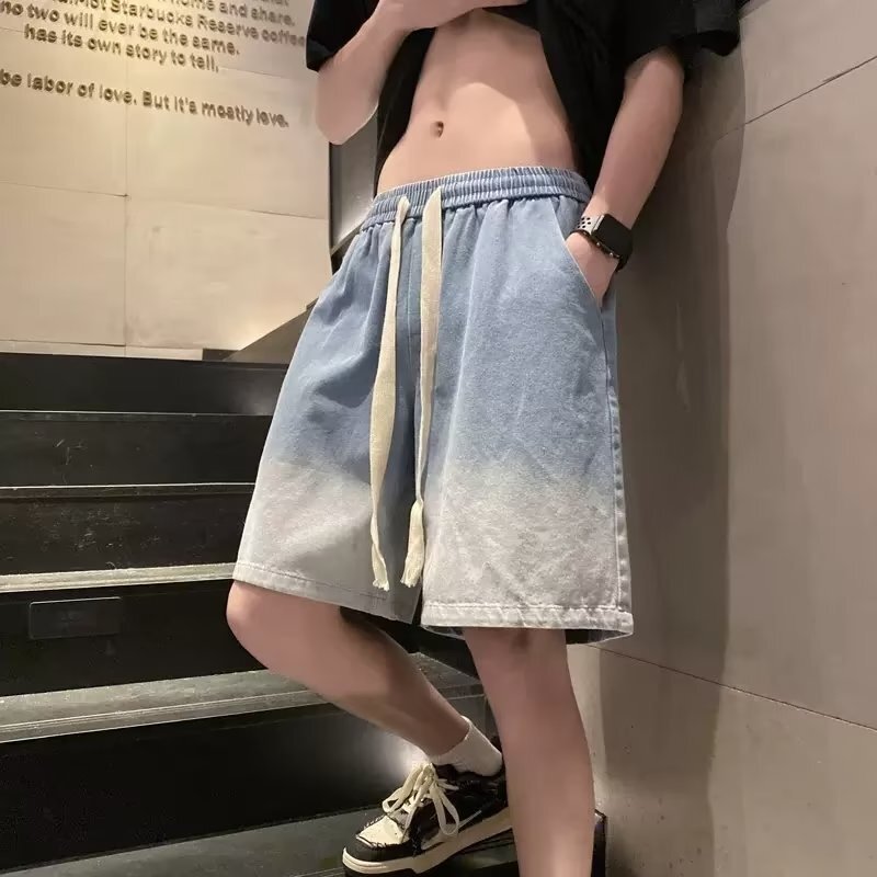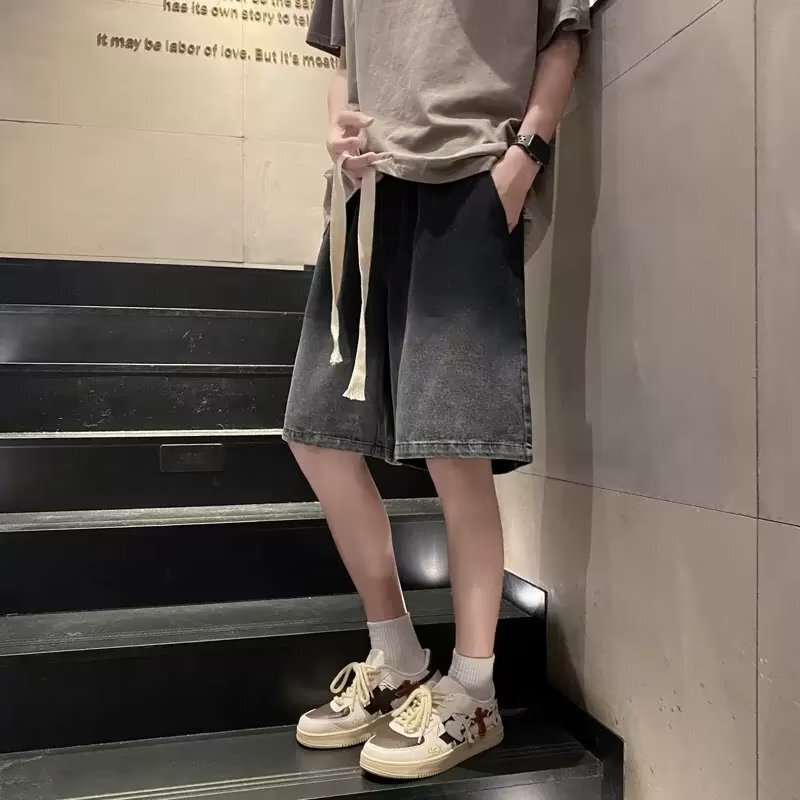 渐变牛仔五分裤潮牌ins宽松青少年男士裤子夏季薄款阔腿休闲短裤
