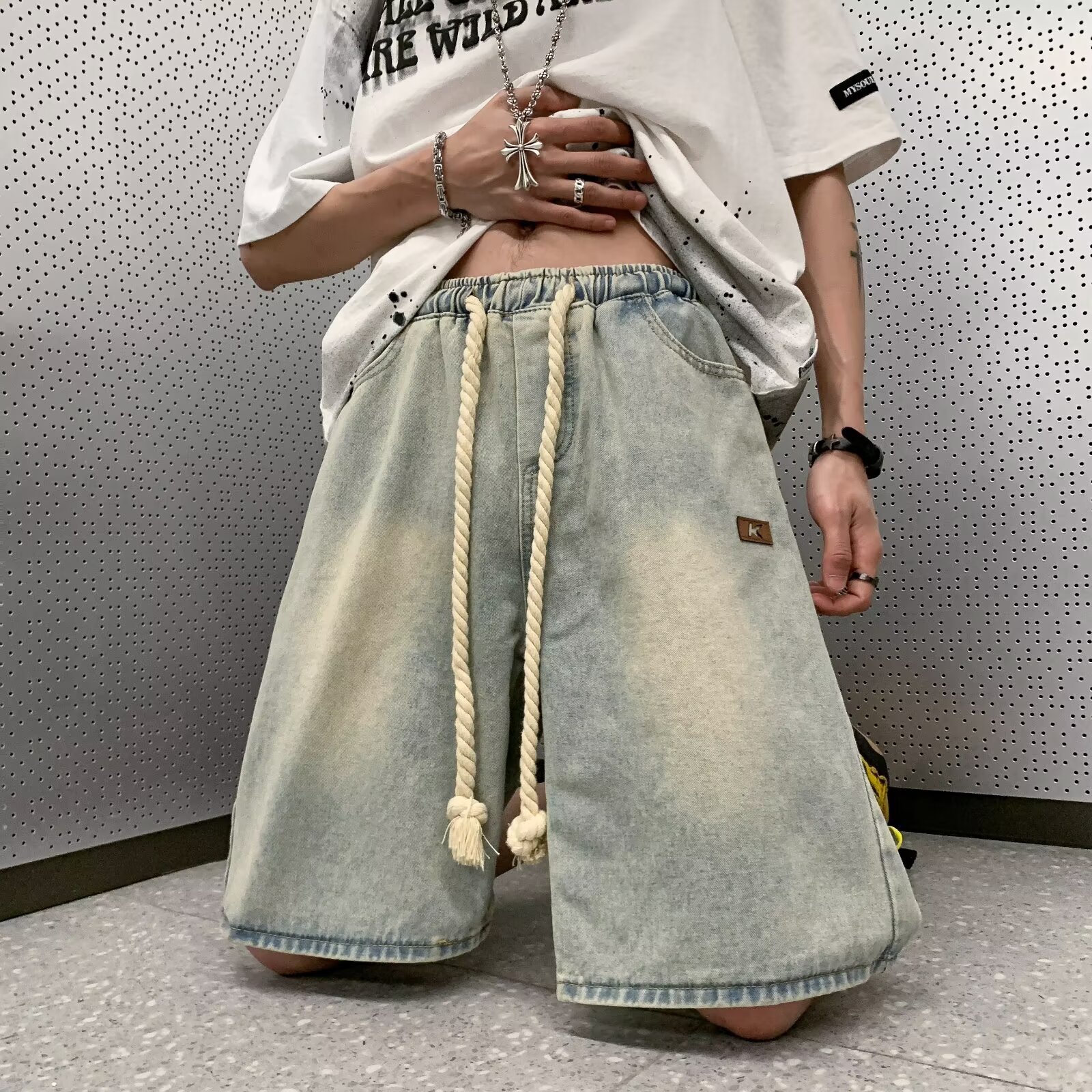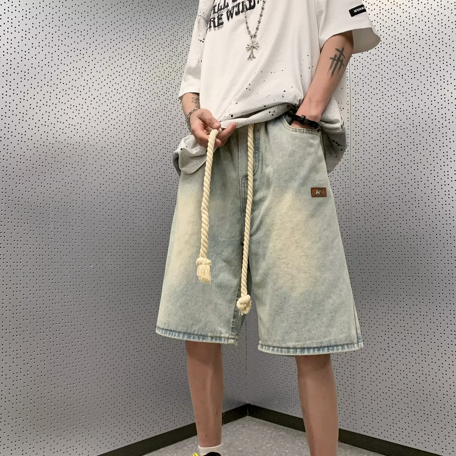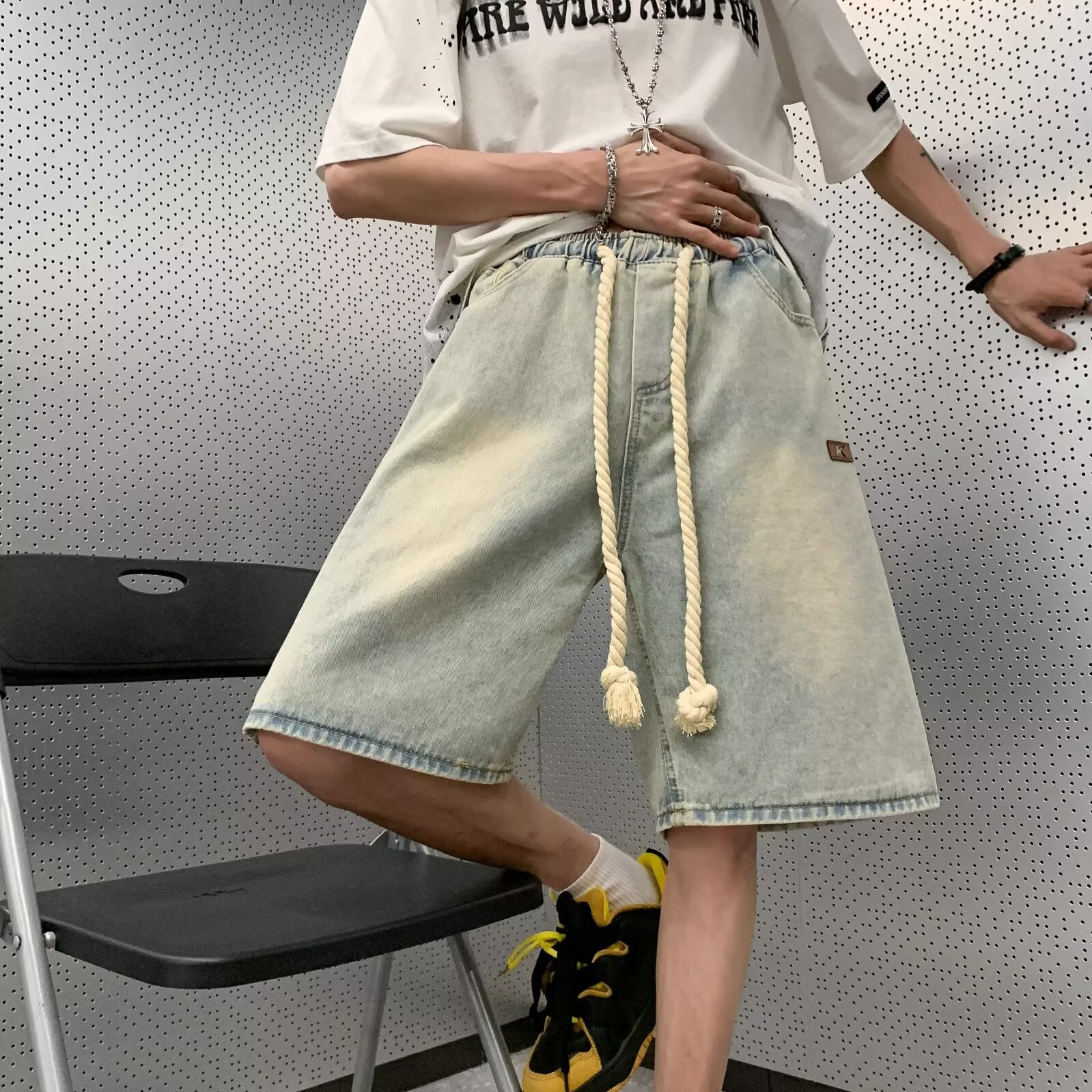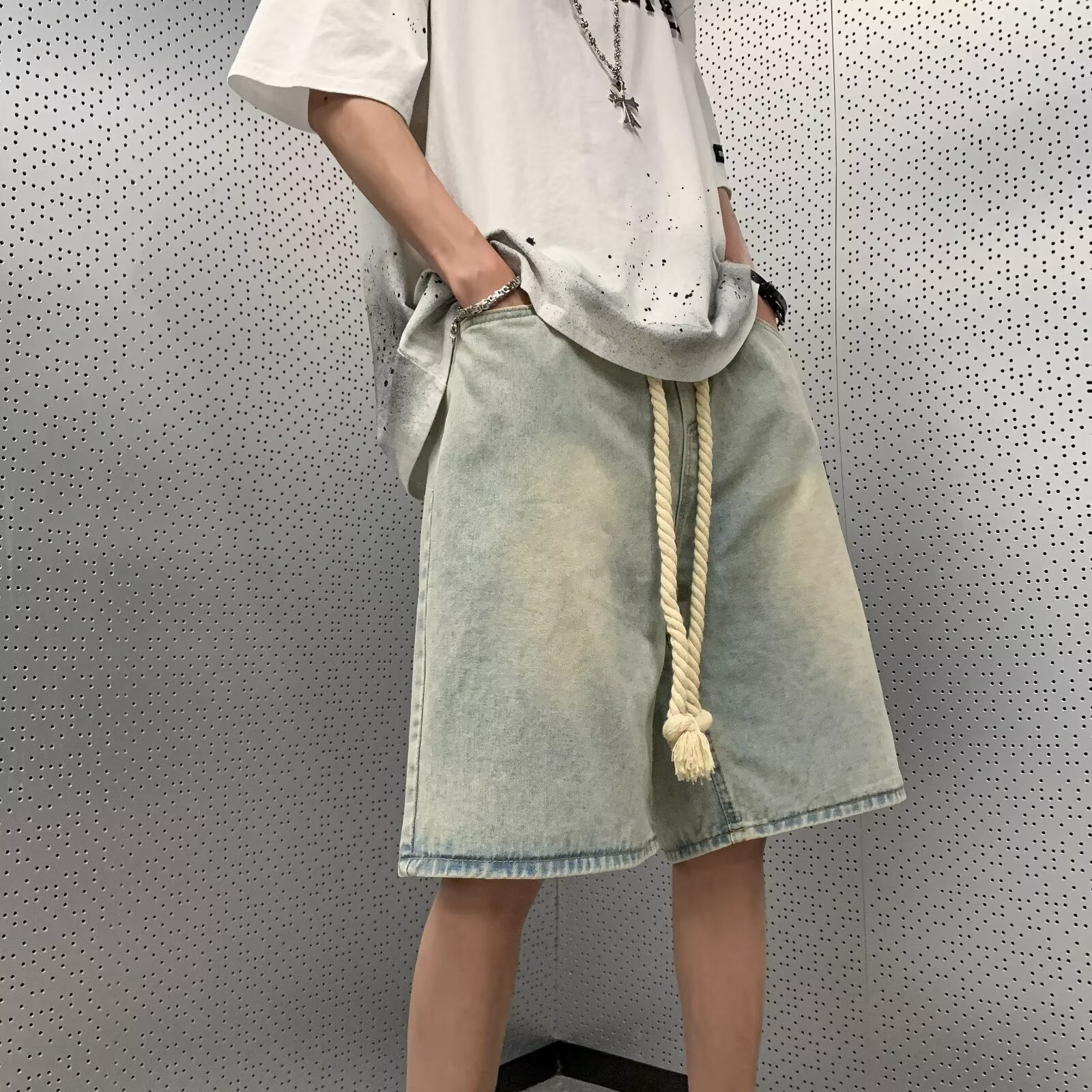 美式复古夏季薄款牛仔短裤男士新款潮牌休闲直筒宽松五分裤子