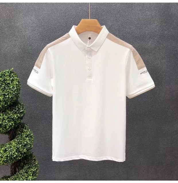 日式拼接翻领polo衫男夏季新款潮流百搭休闲短袖体恤男上衣服