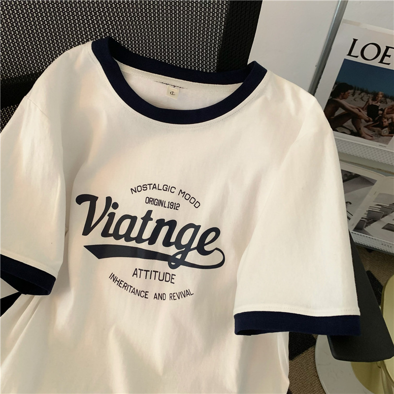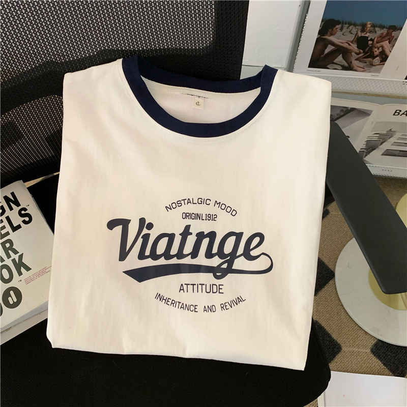 白色盐系纯棉短袖T恤女夏季韩版小个子宽松印花原宿港风上衣
