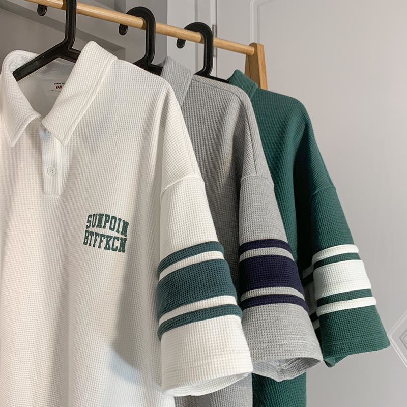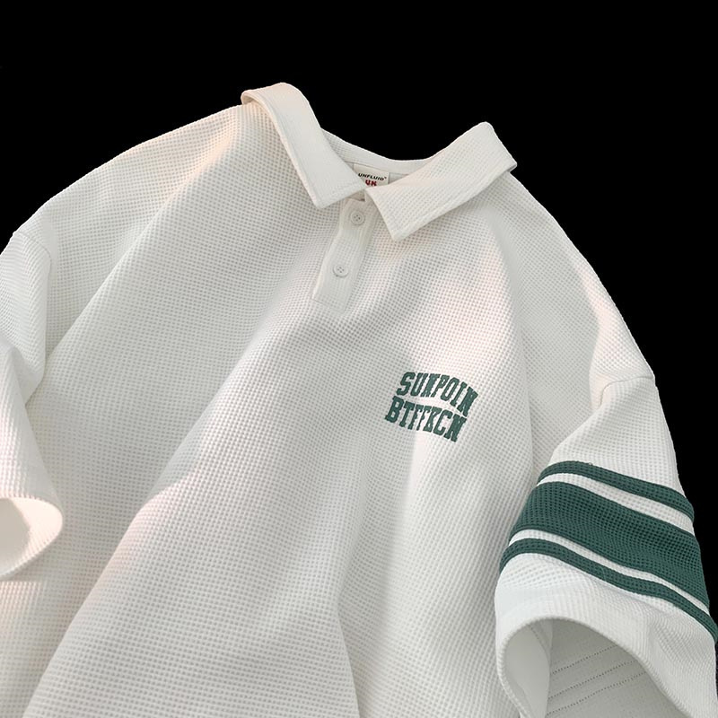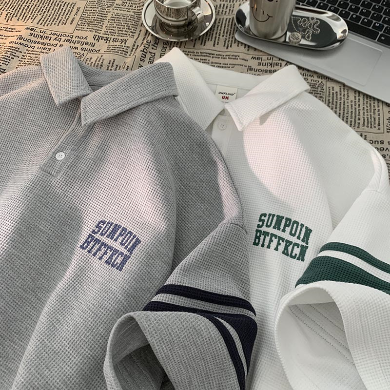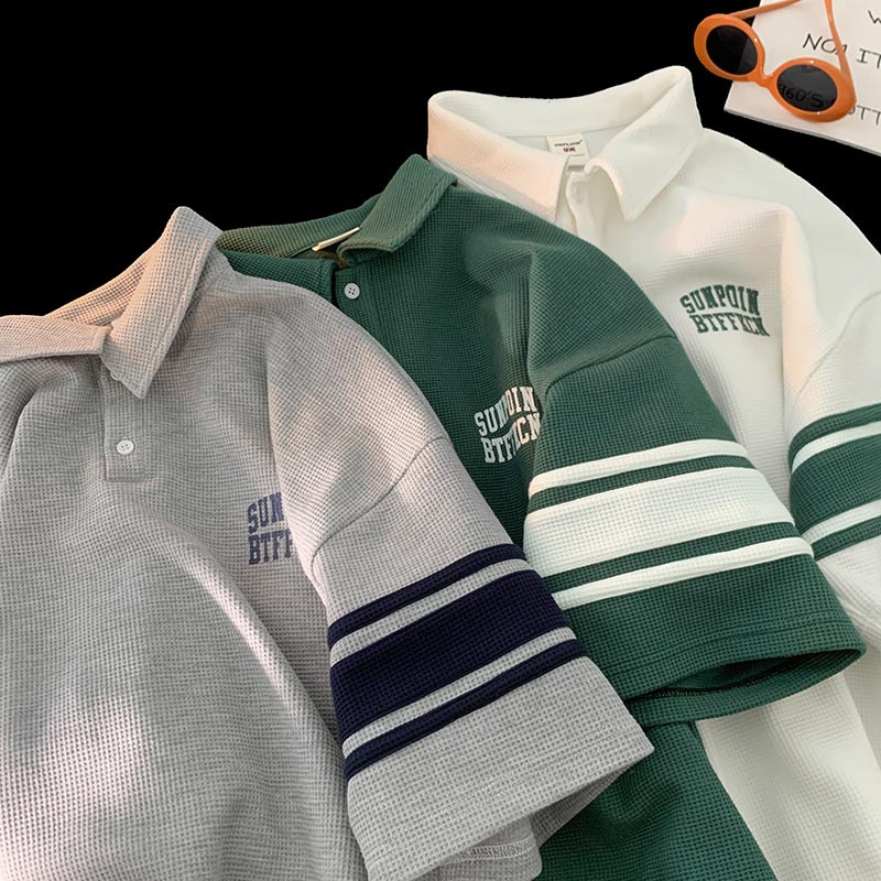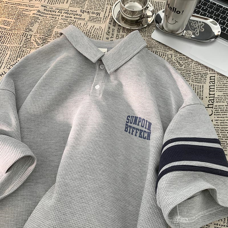 华夫格短袖POLO衫男夏季新款美式潮牌潮流宽松t恤学生休闲半袖衫