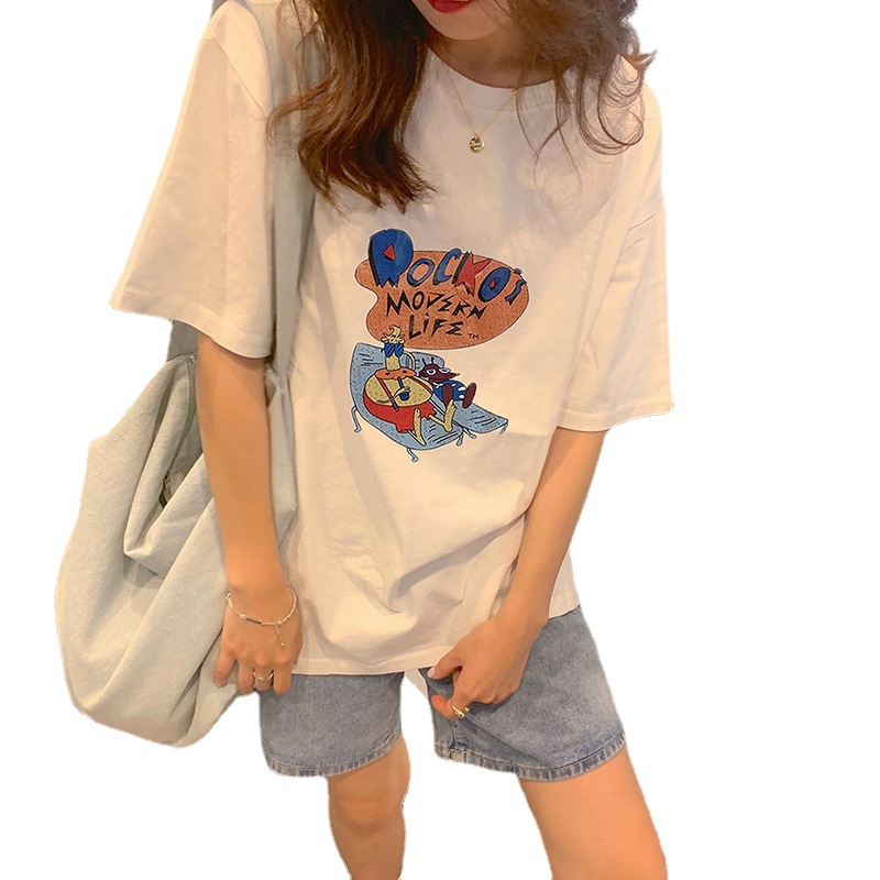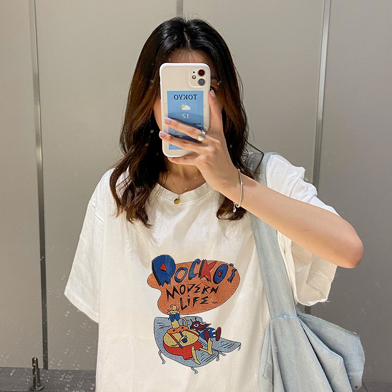 纯棉短袖白色T恤女夏季新款慵懒风时尚宽松设计感ins打底上衣