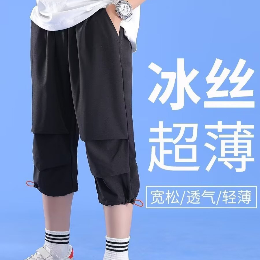 男童夏季薄款七分裤大童裤子速干冰丝短裤儿童运动中裤男孩夏装潮
