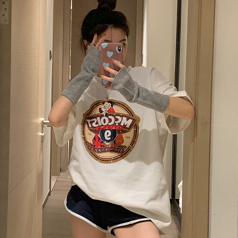 日系做旧复古风中长款短袖T恤女夏季宽松慵懒风胖MM大码上衣