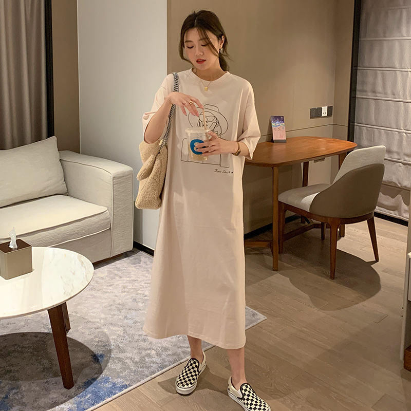 夏季新款韩式短袖T恤长裙胖MM180斤宽松显瘦连衣裙时尚孕妇裙