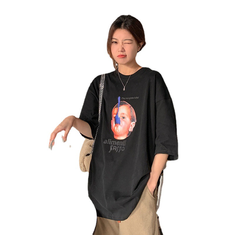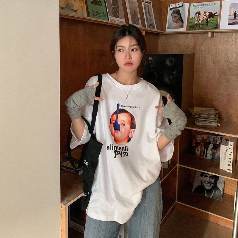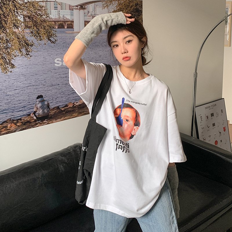 卡通趣味纯棉短袖T恤女韩版新款宽松显瘦oversize慵懒上衣夏