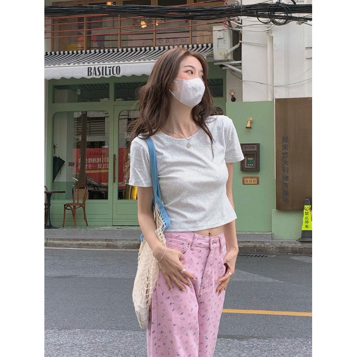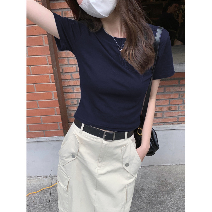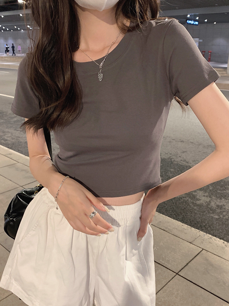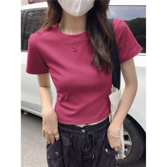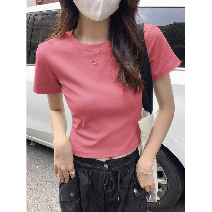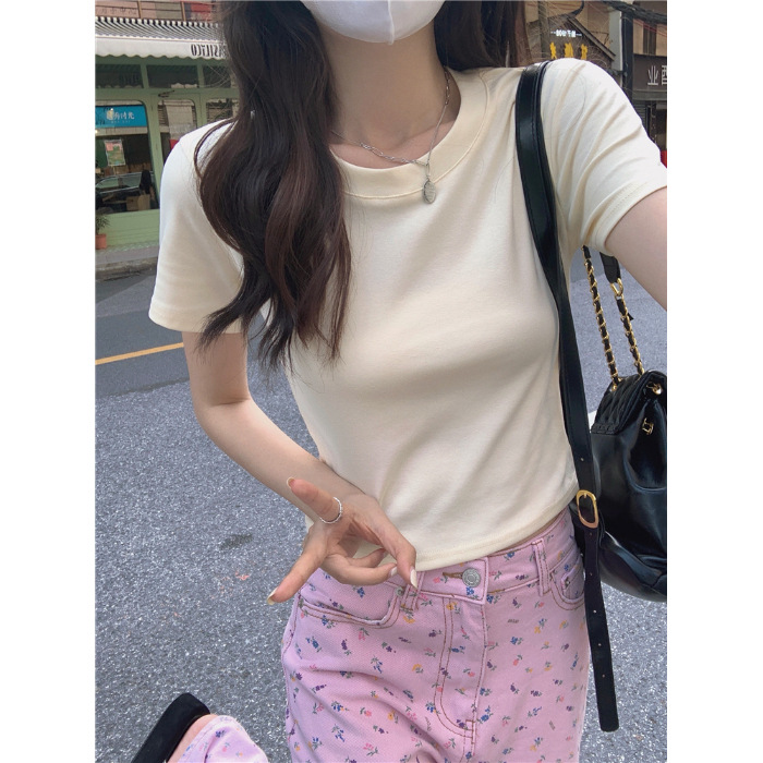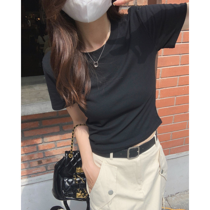 白色短袖T恤韩版女装夏季新款高腰露肚脐短款上衣百搭打底衫