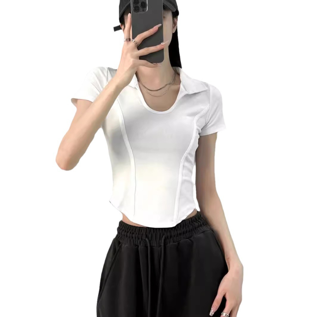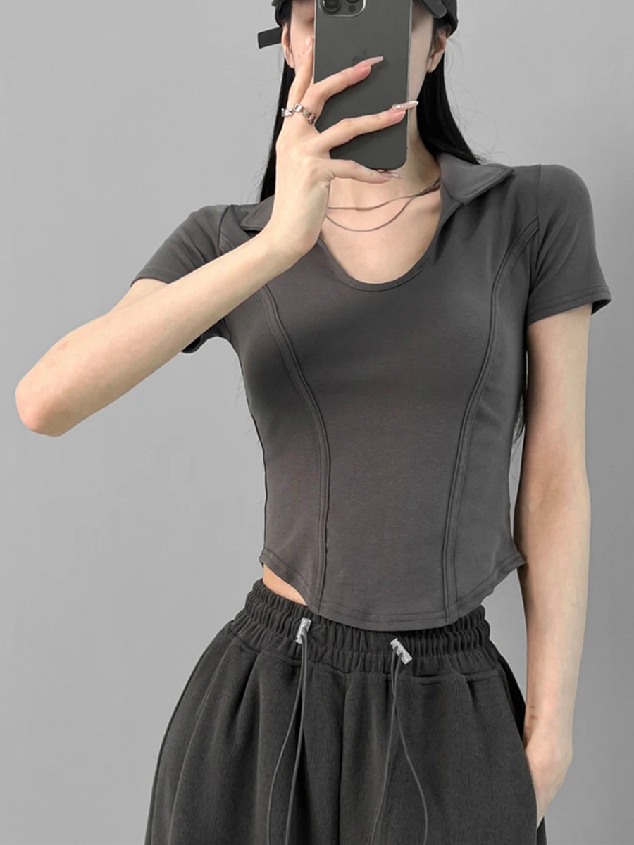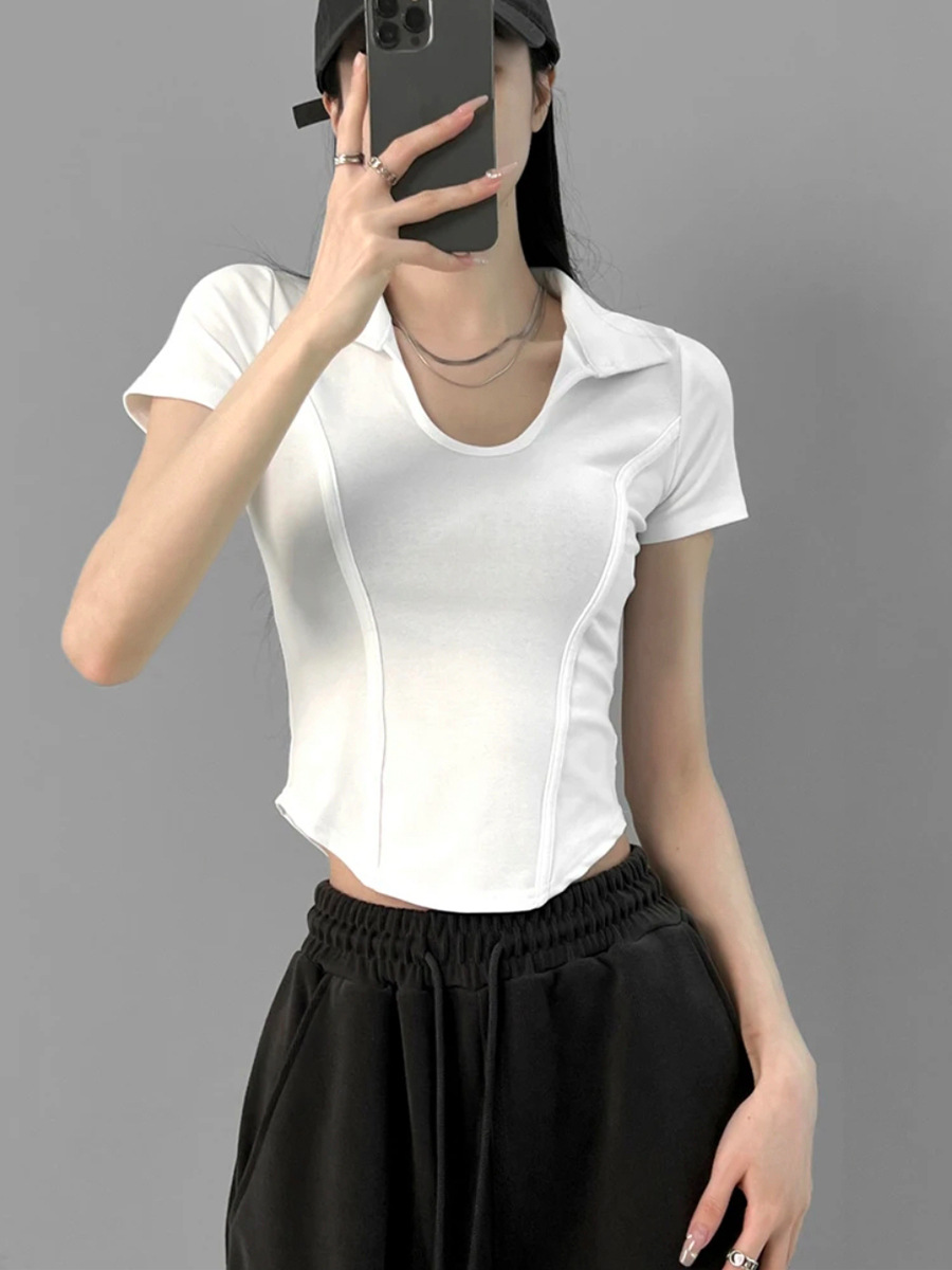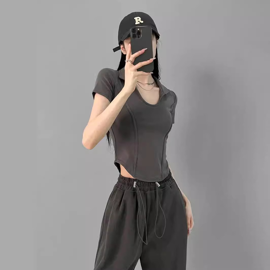 美式甜辣收腰显瘦短款上衣纯欲修身正肩T恤女夏小众设计感小上衣