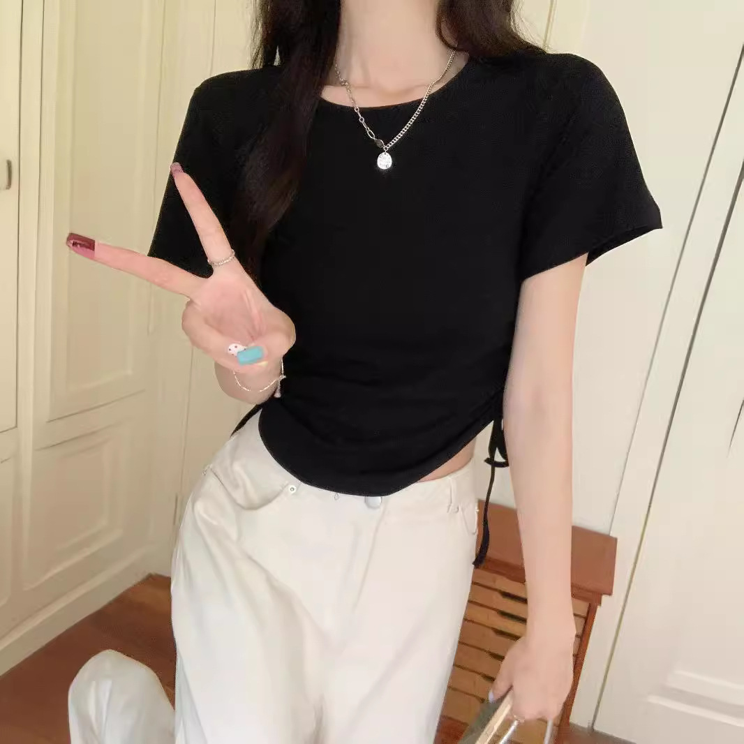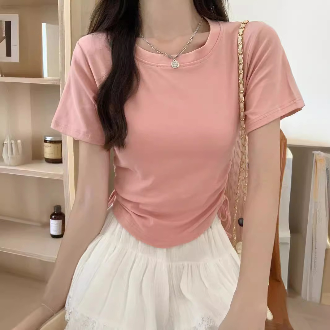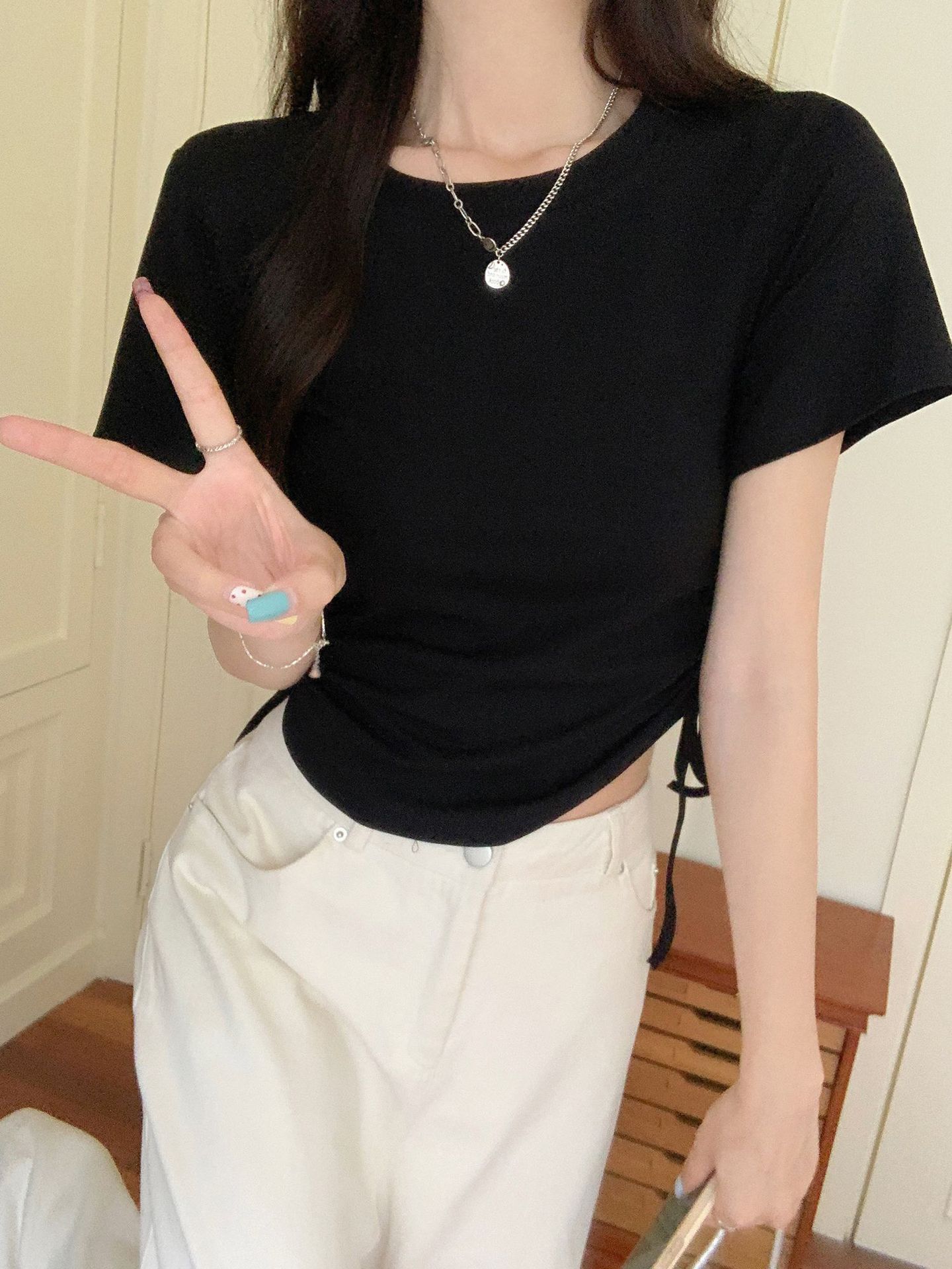 小众设计感侧边抽绳收腰显瘦短袖T女新款时尚洋气百搭上衣夏