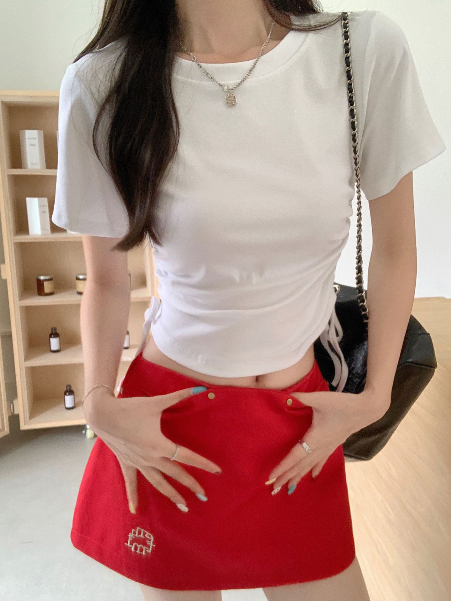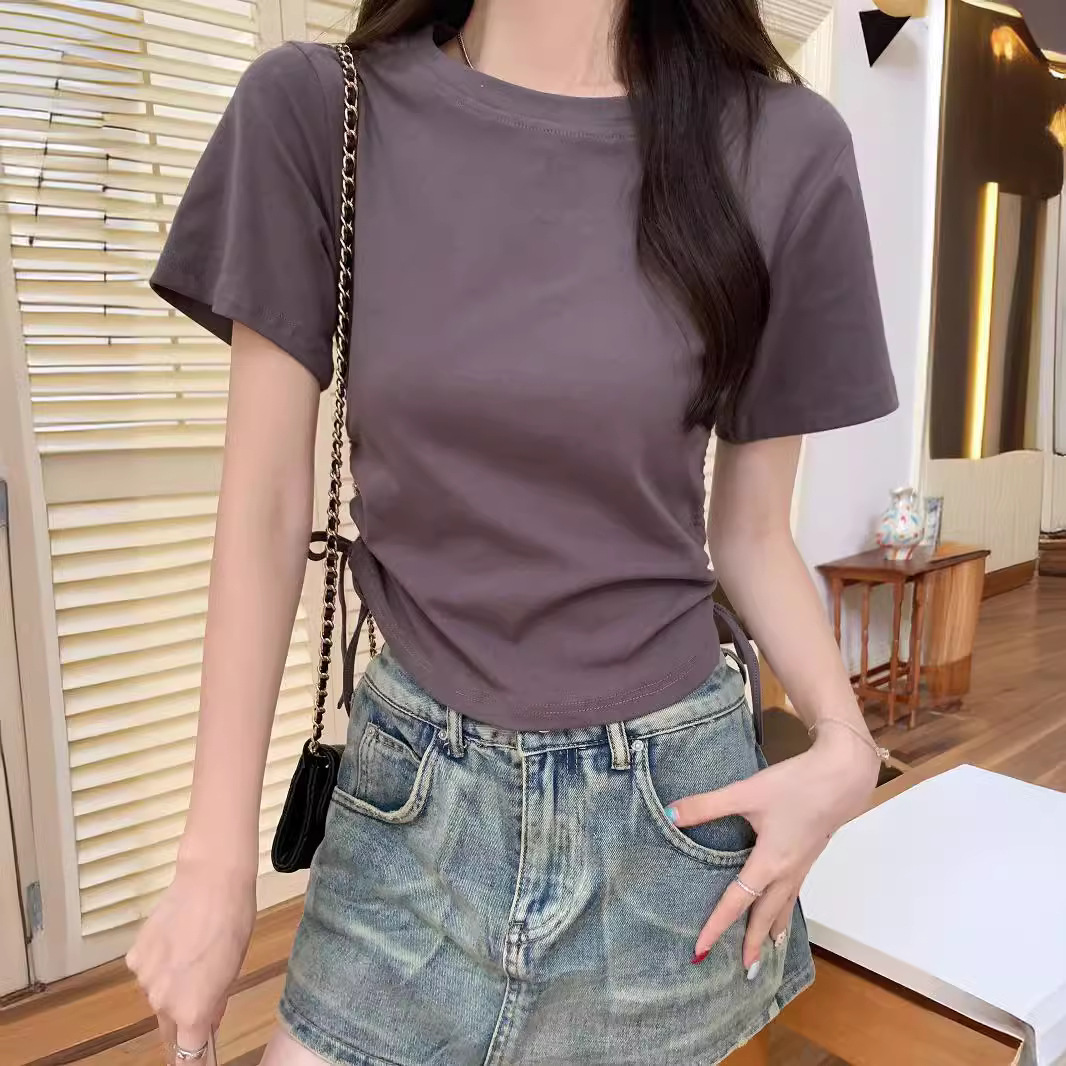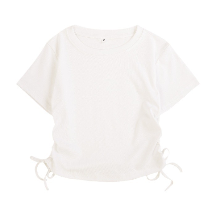 小众设计感侧边抽绳收腰显瘦短袖T女新款时尚洋气百搭上衣夏