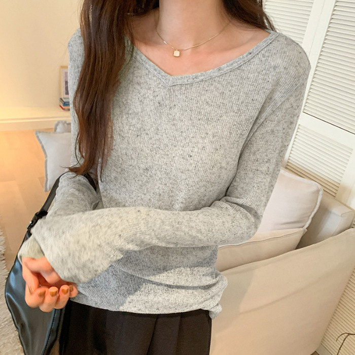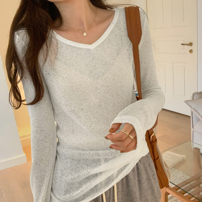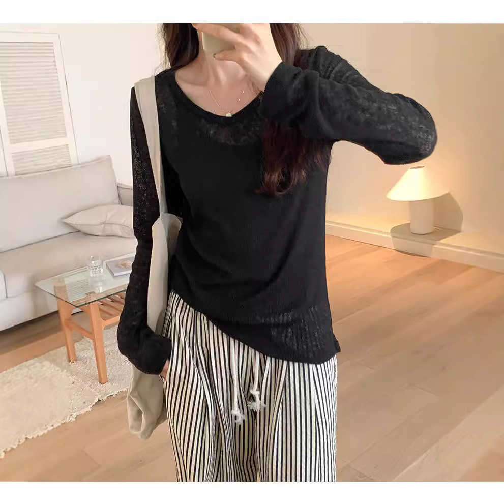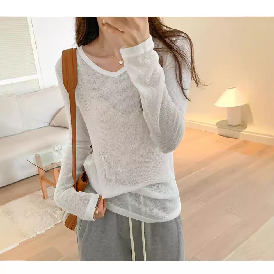 韩版纯欲微透长袖T恤女早秋薄款新款宽松慵懒松弛感防晒罩衫