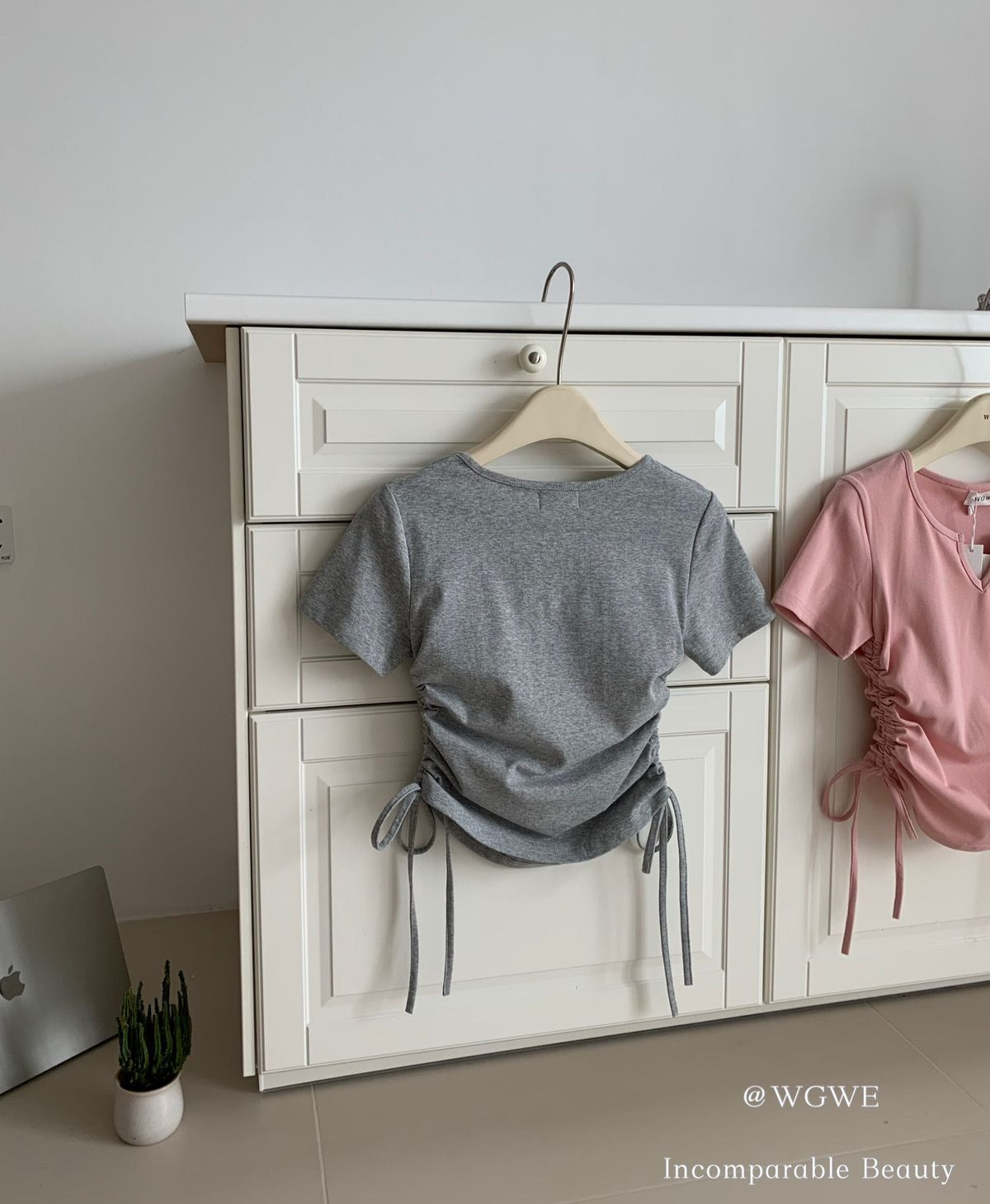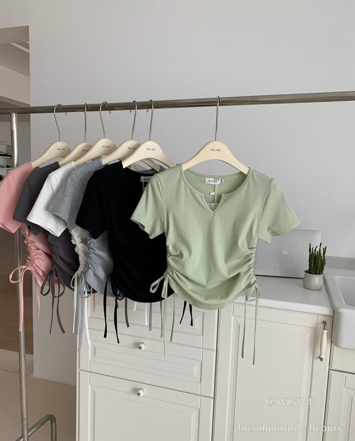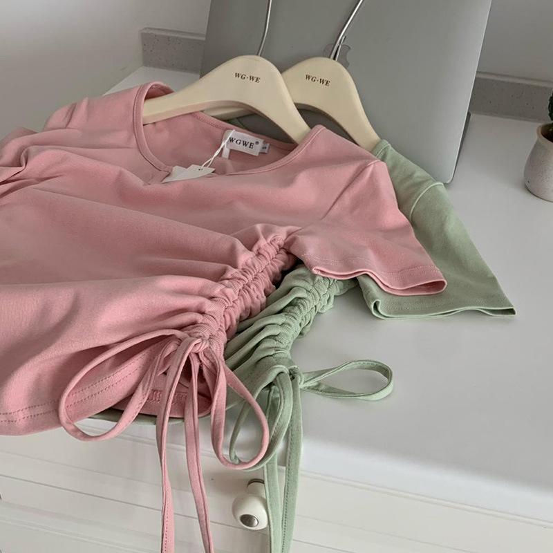 夏季新款韩版设计感小众辣妹正肩上衣女短袖t恤显瘦v领瑜伽服