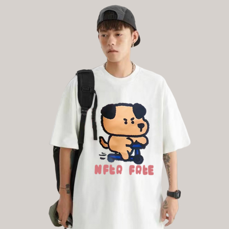 白色小狗印花短袖T恤男夏季oversize欧美潮牌风时尚休闲半袖上衣