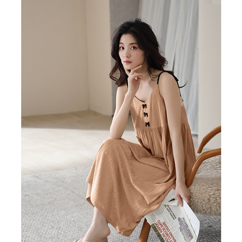 莫代尔睡裙女夏款简约休闲长款可外穿吊带睡衣凉感家居服裙子夏天