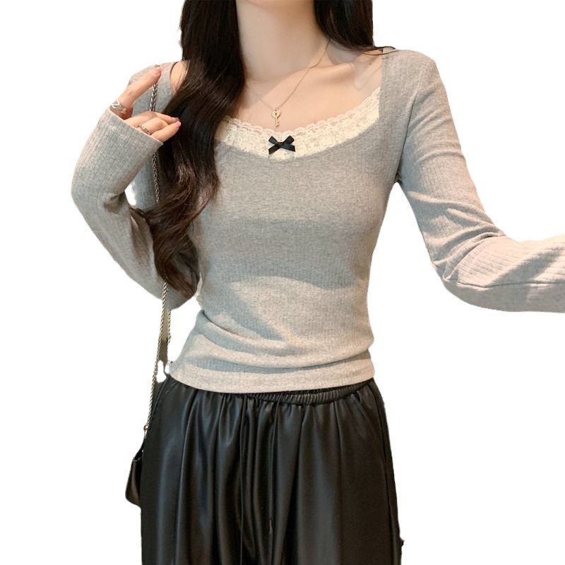 蕾丝长袖打底衫女秋冬新款高级感纯欲风修身小衫德绒内搭上衣