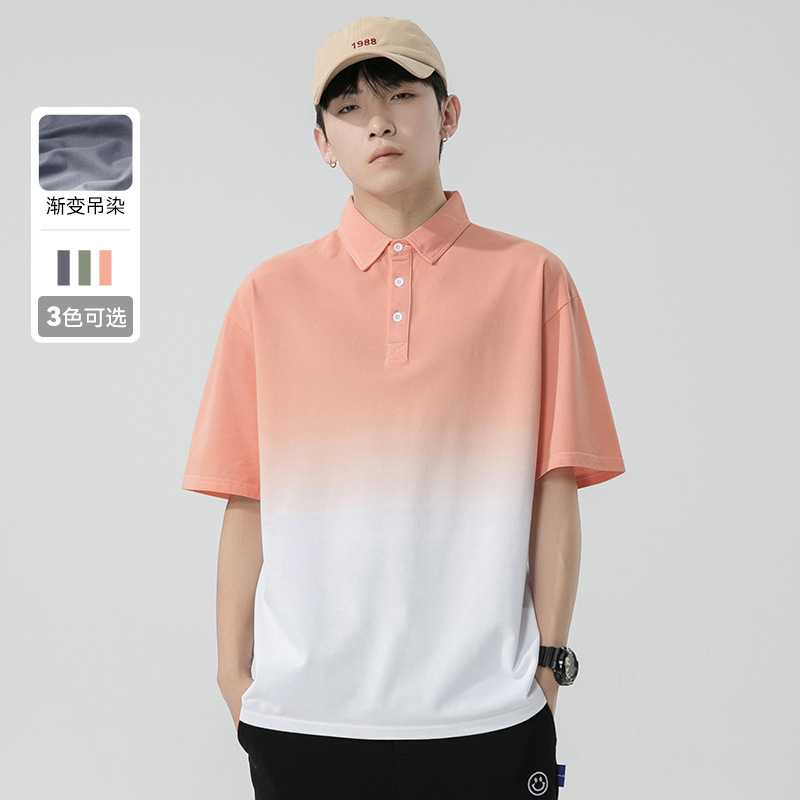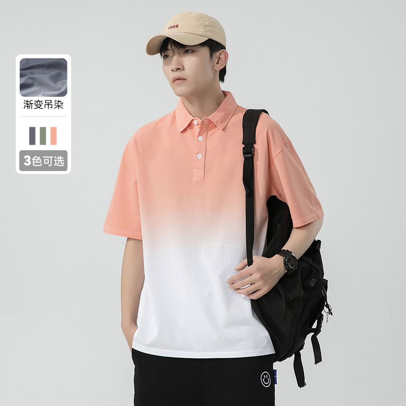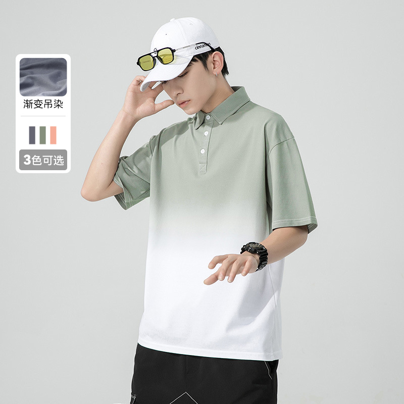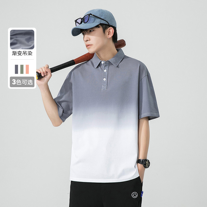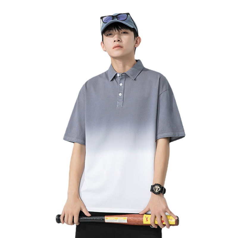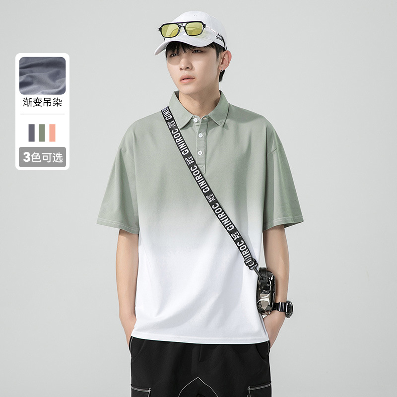 鲲海鹏云男装休闲男士半袖夏季新款渐变polo衫男韩版宽松潮流上衣