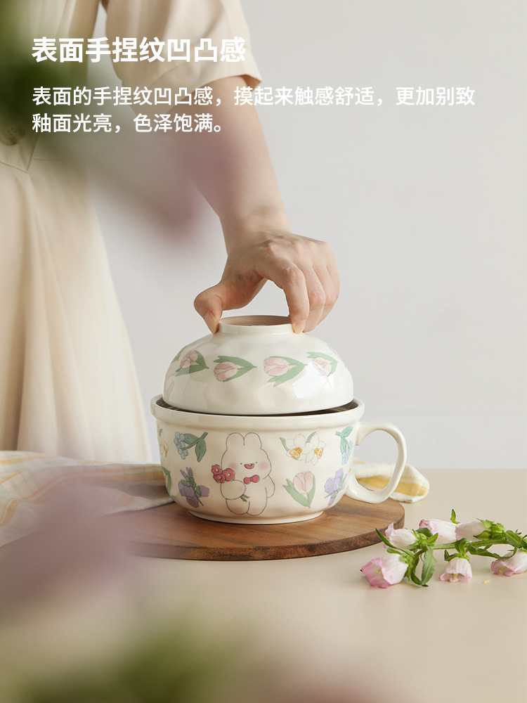 泡面碗带盖高颜值可爱陶瓷方便面碗