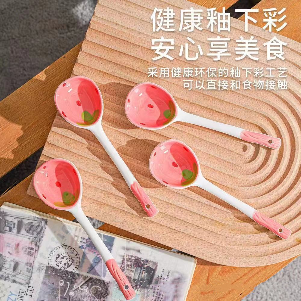 ins草莓勺陶瓷长柄勺子高颜值烹饪勺子家用调羹少女甜点勺