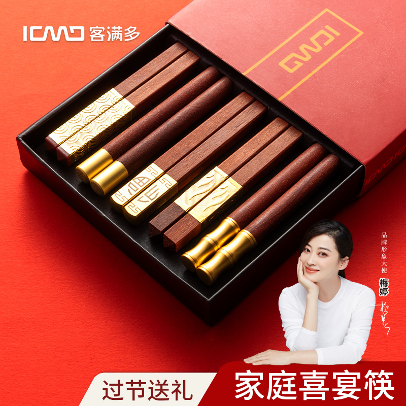 客满多红檀木筷子实木新中式家用天然无漆无蜡国潮风一人一筷分餐