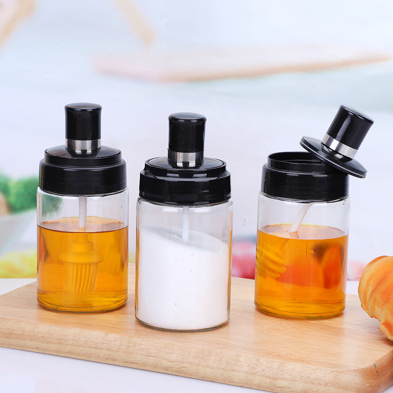 玻璃调料瓶厨房用品调料罐防潮勺盖一体调料瓶套装调料盒控盐瓶