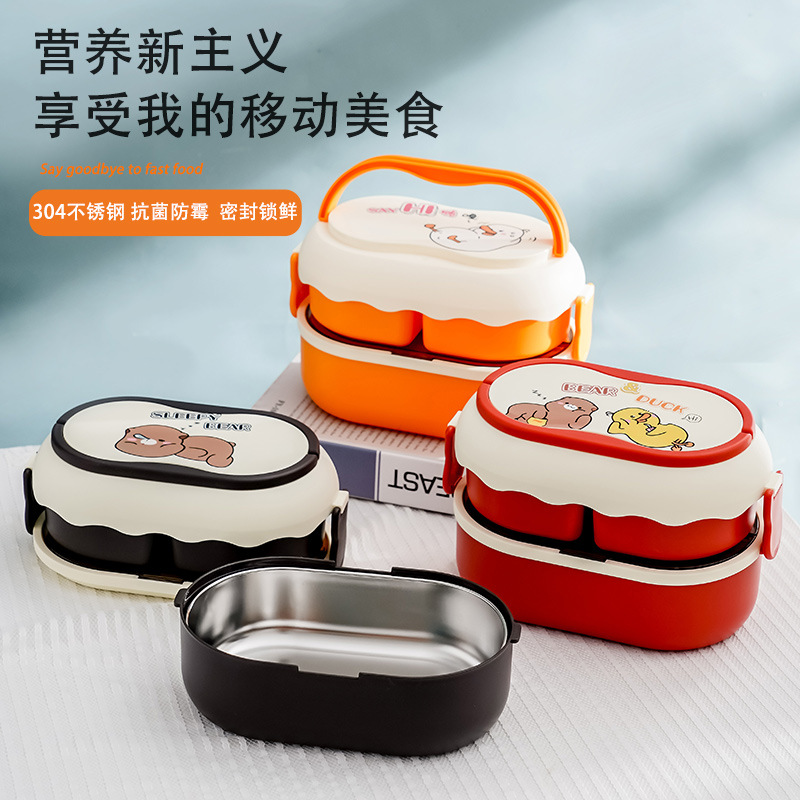 饭盒卡通双层分格学生保鲜盒便携大容量可微波炉便当盒