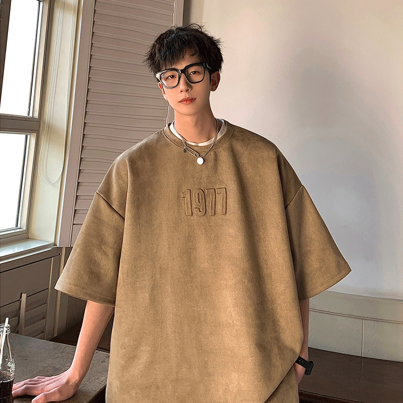 男生衣服搭配帅气夏季重磅1977咖色t恤短袖潮牌潮流美式五分体恤