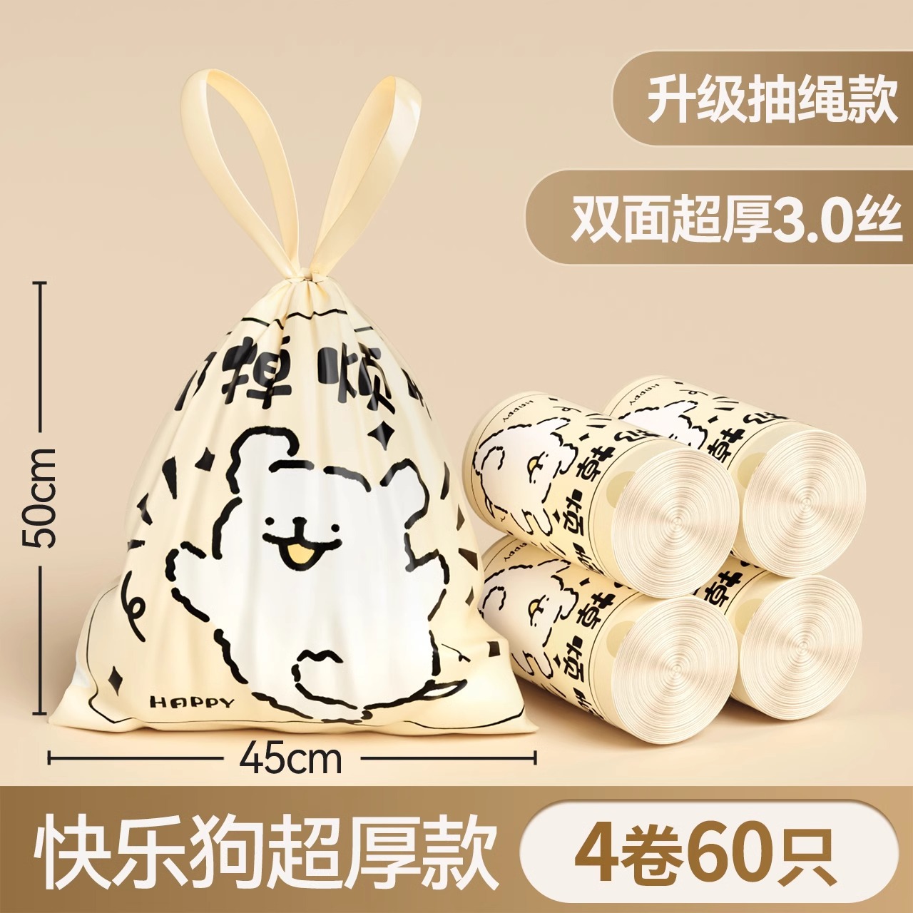 - 快乐小狗-双面超厚3.0丝【4卷60只】加大抽绳款
