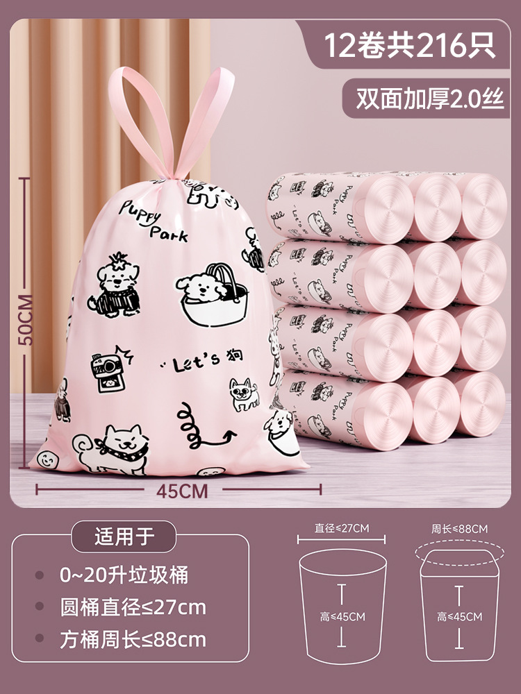 加厚抽绳垃圾袋家用实惠装收口厨房手提式塑料袋办公室宿舍清洁袋
