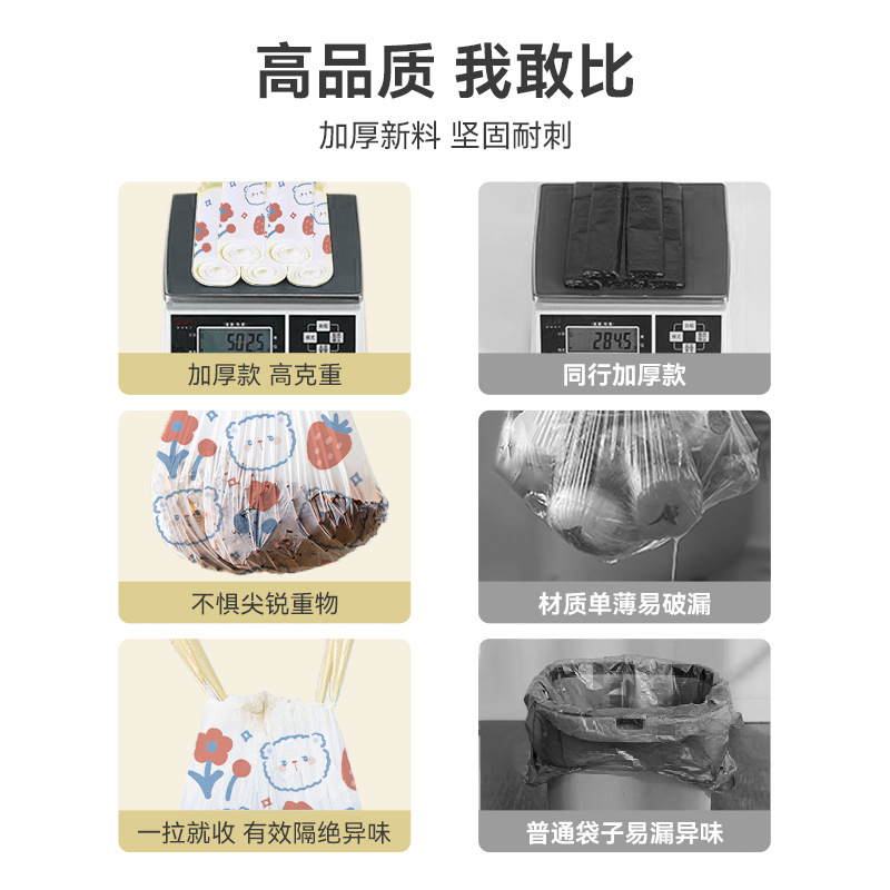 垃圾袋家用手提式抽绳厨房加厚宿舍学生收口塑料袋商用