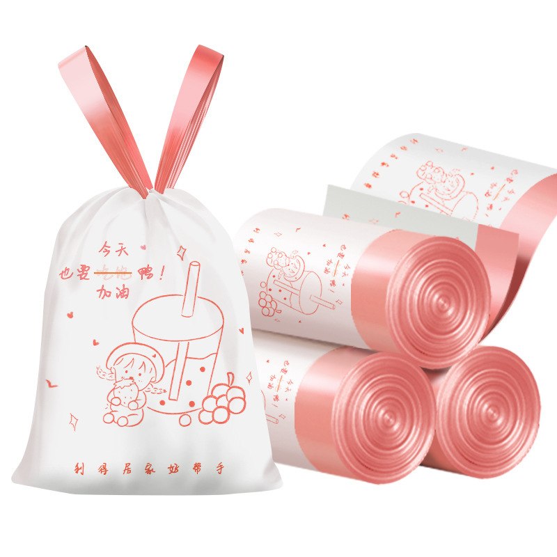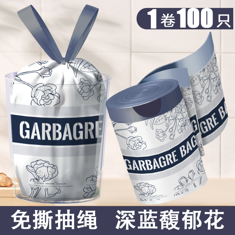 免撕款印花加厚抽绳垃圾袋家用黑色厨房手提式