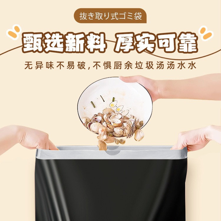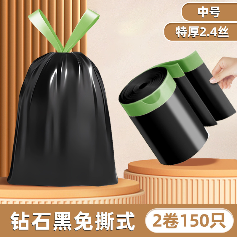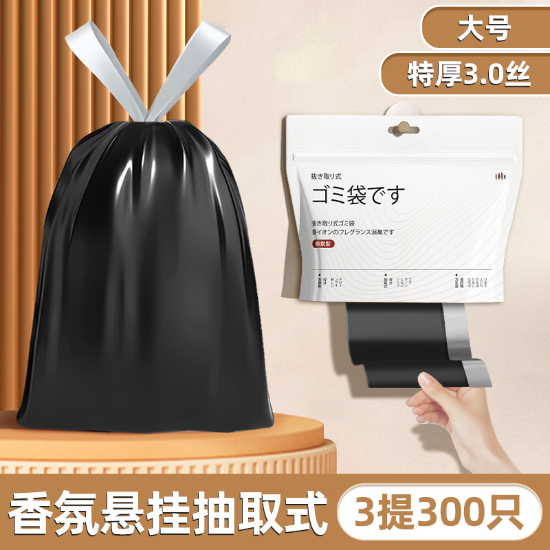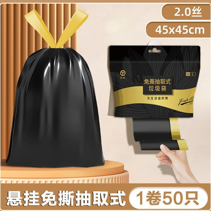 免撕抽绳垃圾袋大号家用手提式加厚自动收口抽取式厨房塑料袋