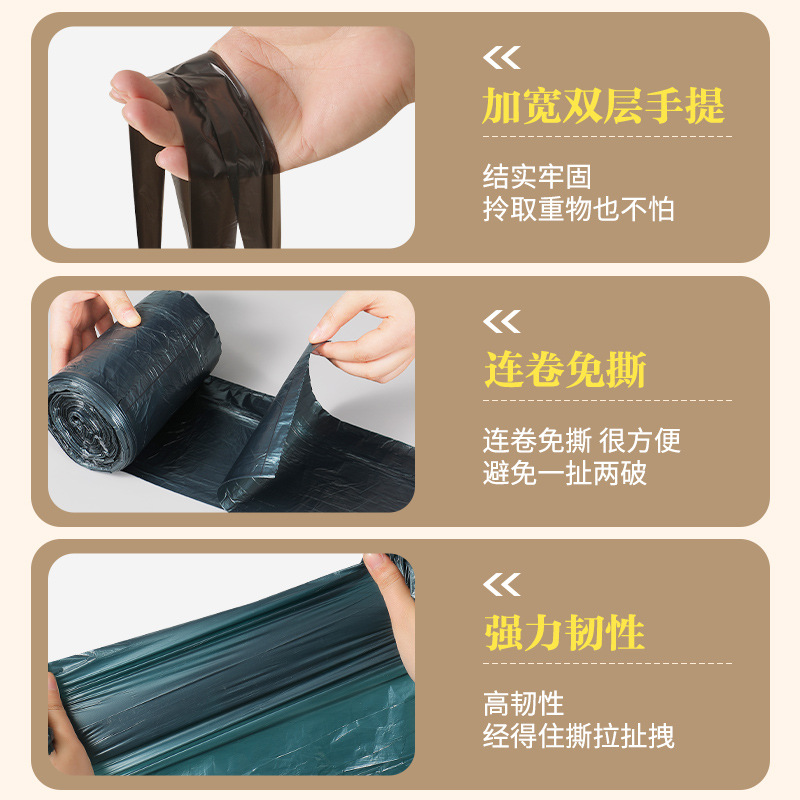 免撕抽绳免撕垃圾袋家用手提式自动收口加厚厨房大号抽绳塑料袋