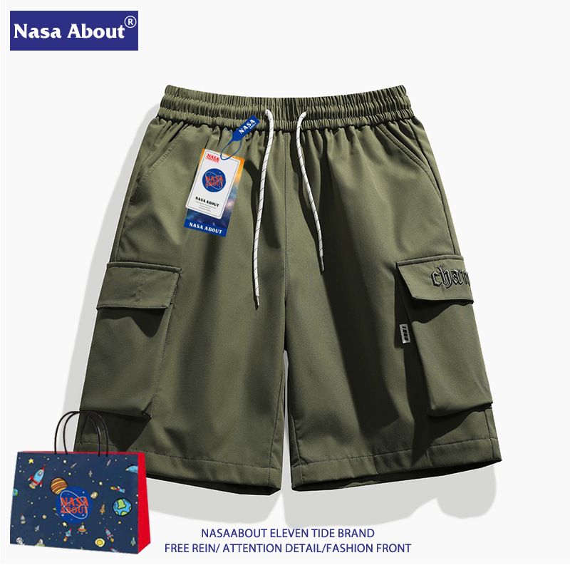 NASA短裤男士夏季冰丝薄款宽松大裤衩美式潮牌运动休闲五分 中裤
