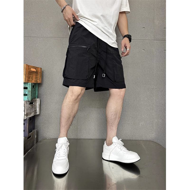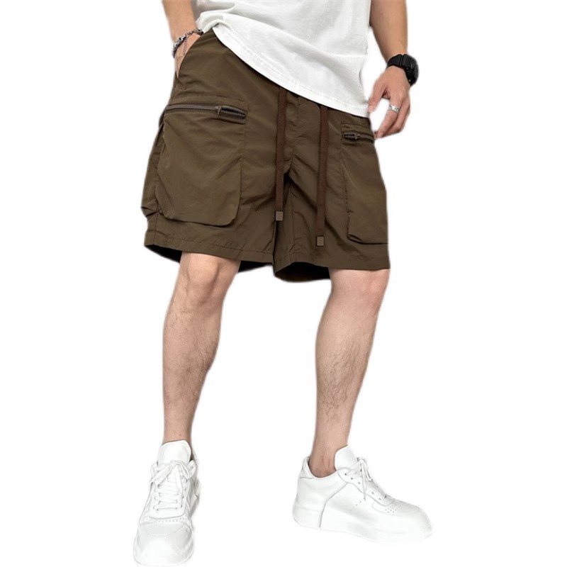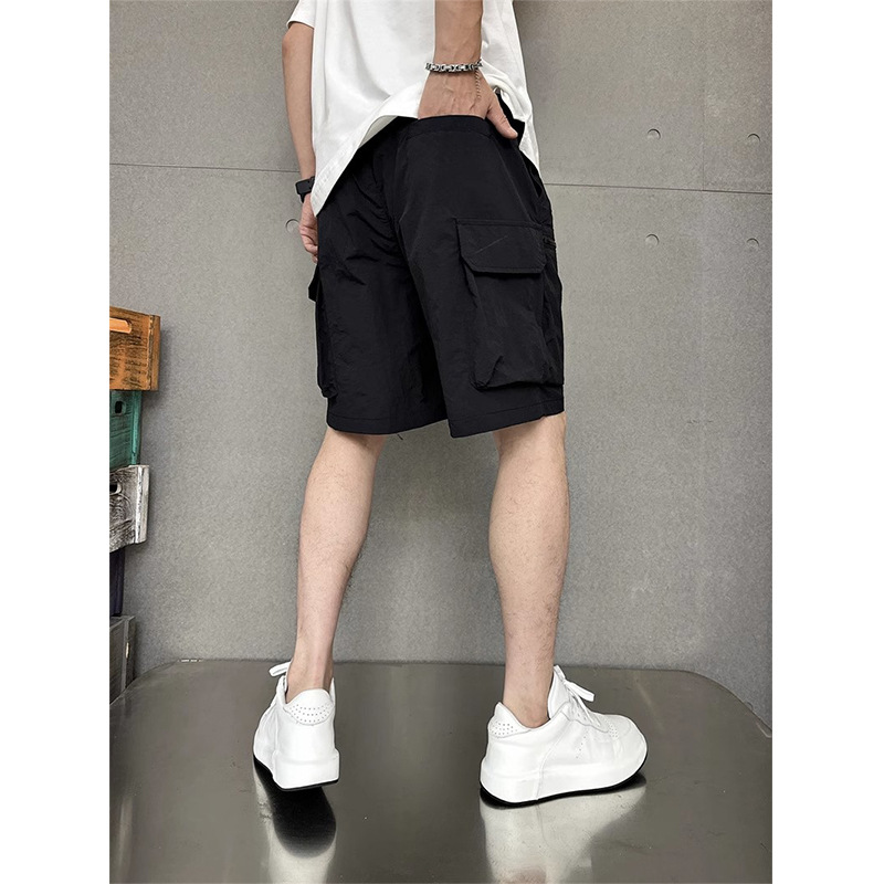 速干夏季多口袋薄款纯色简约宽松工装短裤男士五分休闲潮牌运动裤