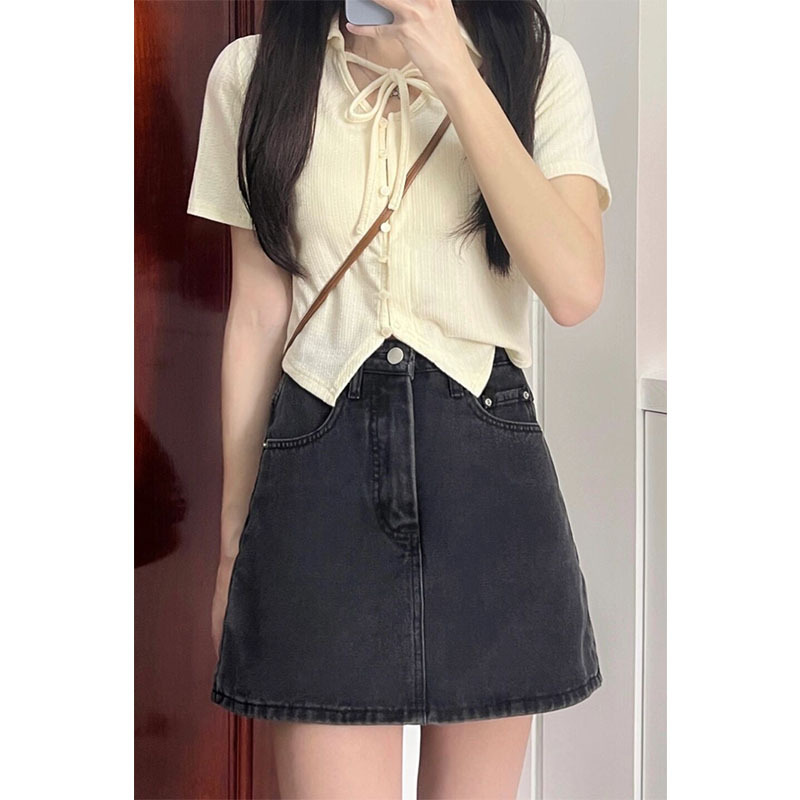绑带设计感polo衫短袖t恤女新款夏季修身甜辣风短款纯欲上衣