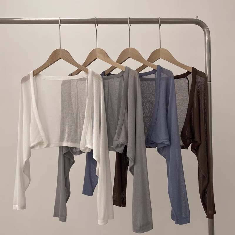 夏季冰丝针织防晒衣女白色开衫配吊带裙外搭罩衫小坎肩外套