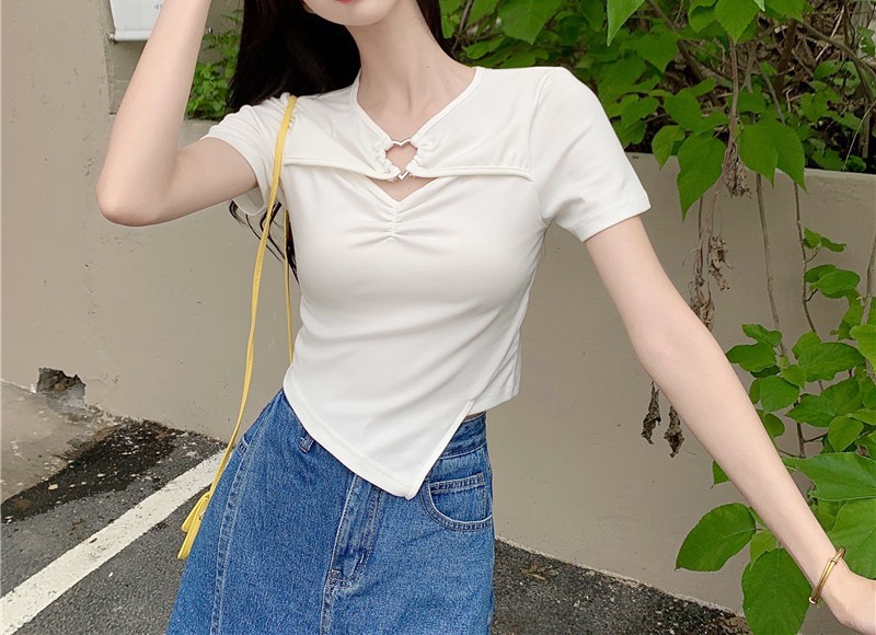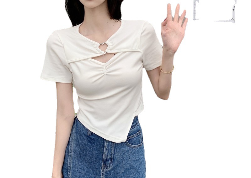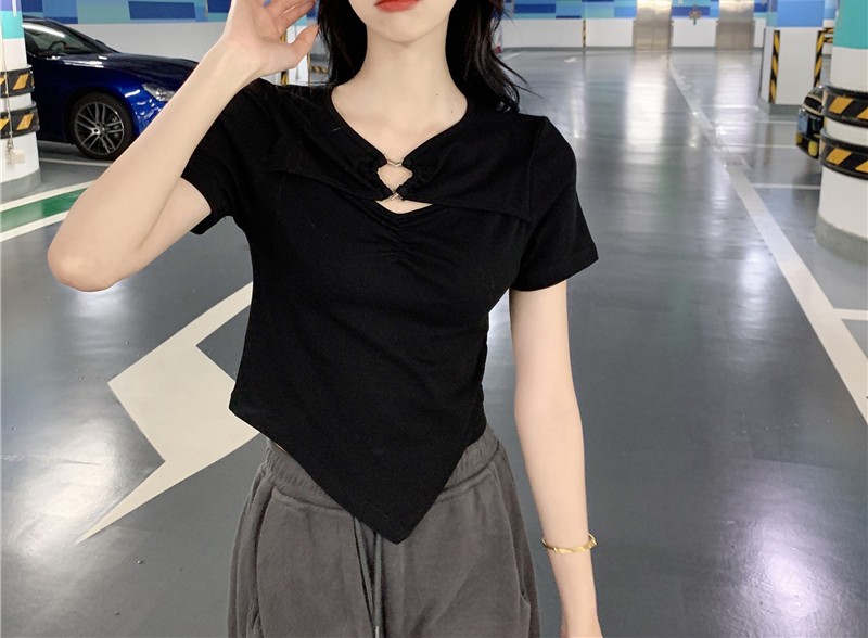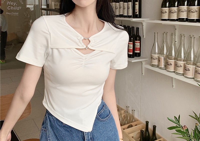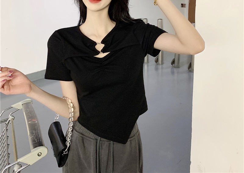 短款纯欲小众短款上衣女心机大码胖mm甜美减龄爱心镂空短袖t恤夏