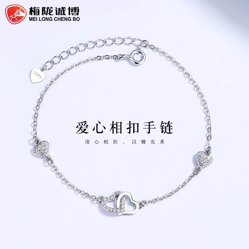 925纯银双爱心形相扣手链女韩版ins简约小众高级感闺蜜个性手饰品